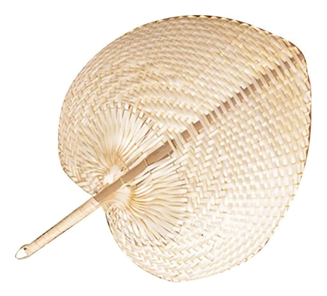 Abanico estilo antiguo con un toque moderno, fabricado en mimbre, decorativo.