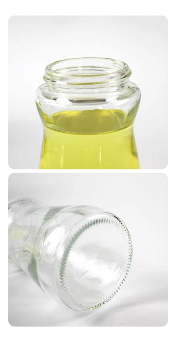 Práctica aceitera con pincel medidor, ideal para cocinar. Puedes utilizarla para aceite, salsa de soja, aderezos caseros, etc. Fabricada en vidrio, con tapa de plástico y pincel en silicona. Capacidad aproximada: 180mL Capacidad del pincel: 9mL Completamente desarmable para una fácil y adecuada limpieza.