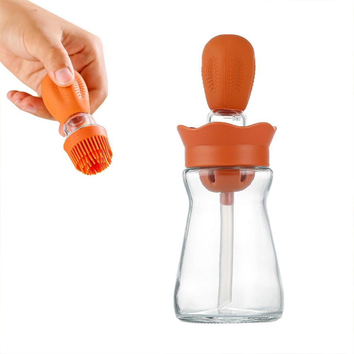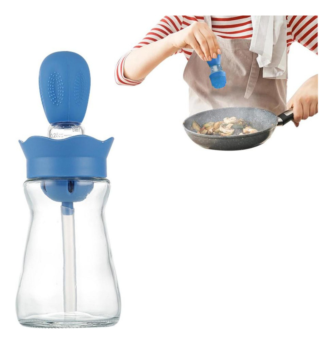 Aceitera Dispensador Aceite Vidrio Y Silicona Pincel Medidor