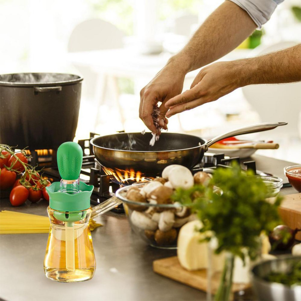 Aceitera Dispensador Aceite Vidrio Y Silicona Pincel Ondas