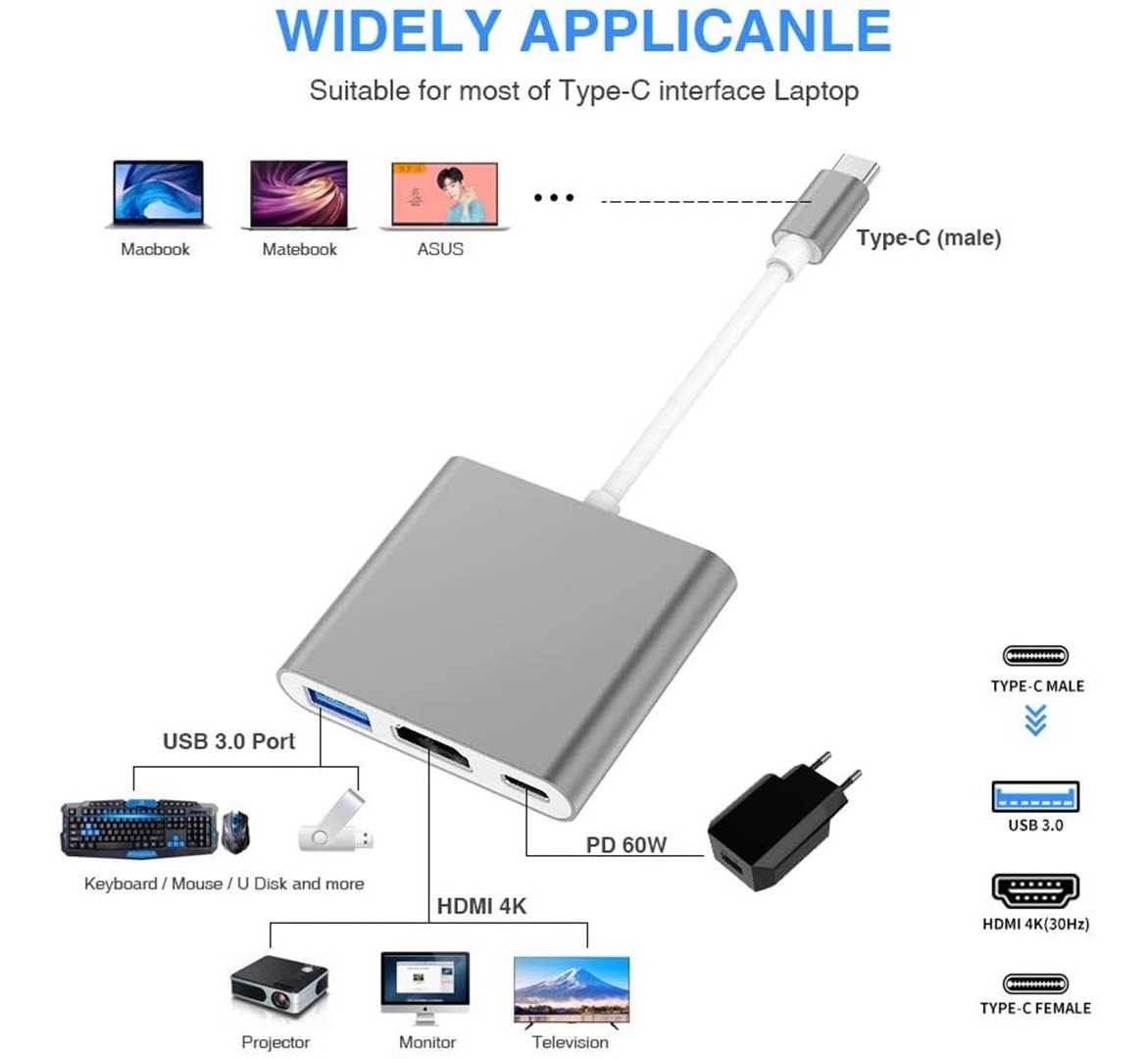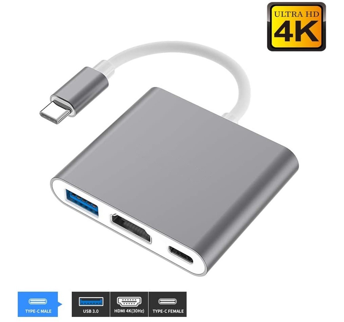 Cable Adaptador 3 en 1 USB-C a HDMI + USB 3.0 USB 3.1