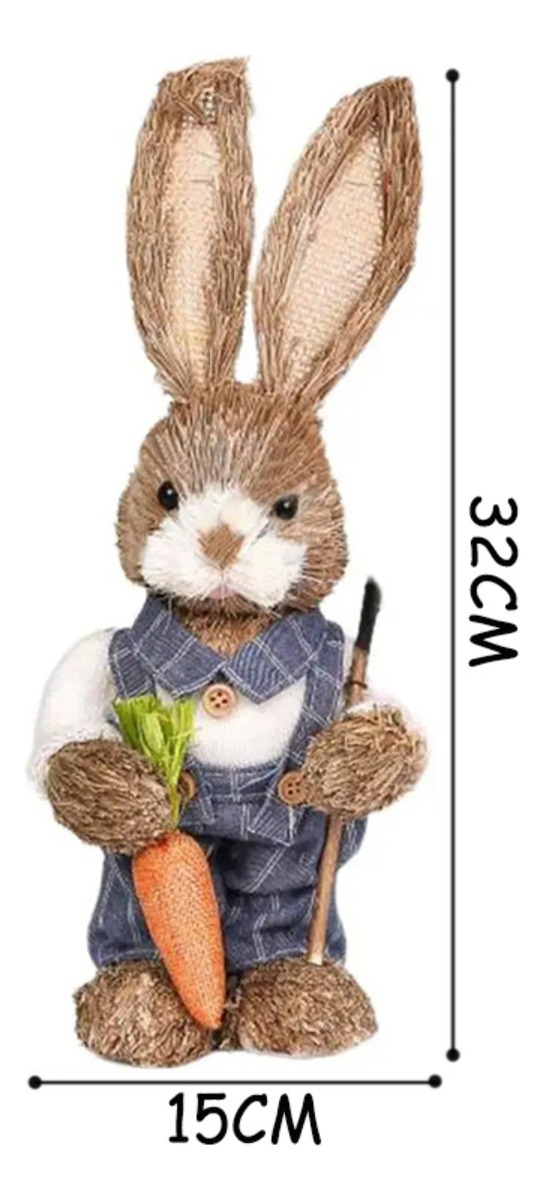 30cm de alturaDivertido y decorativo muñeco de paja con diseño conejo jardinero.Ideal para decorar ambientes joviales, especiales para pascuas!