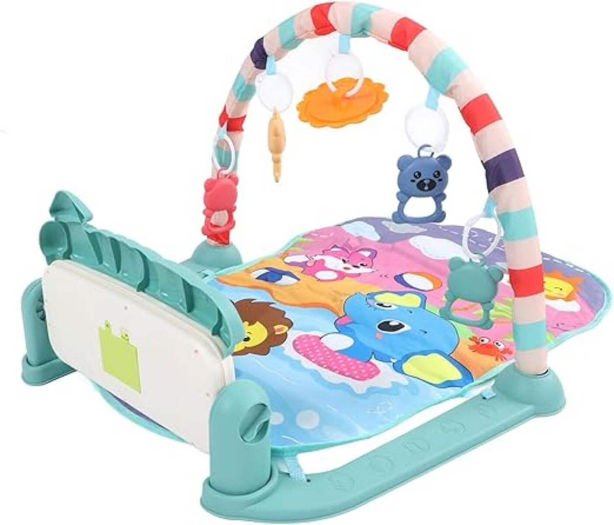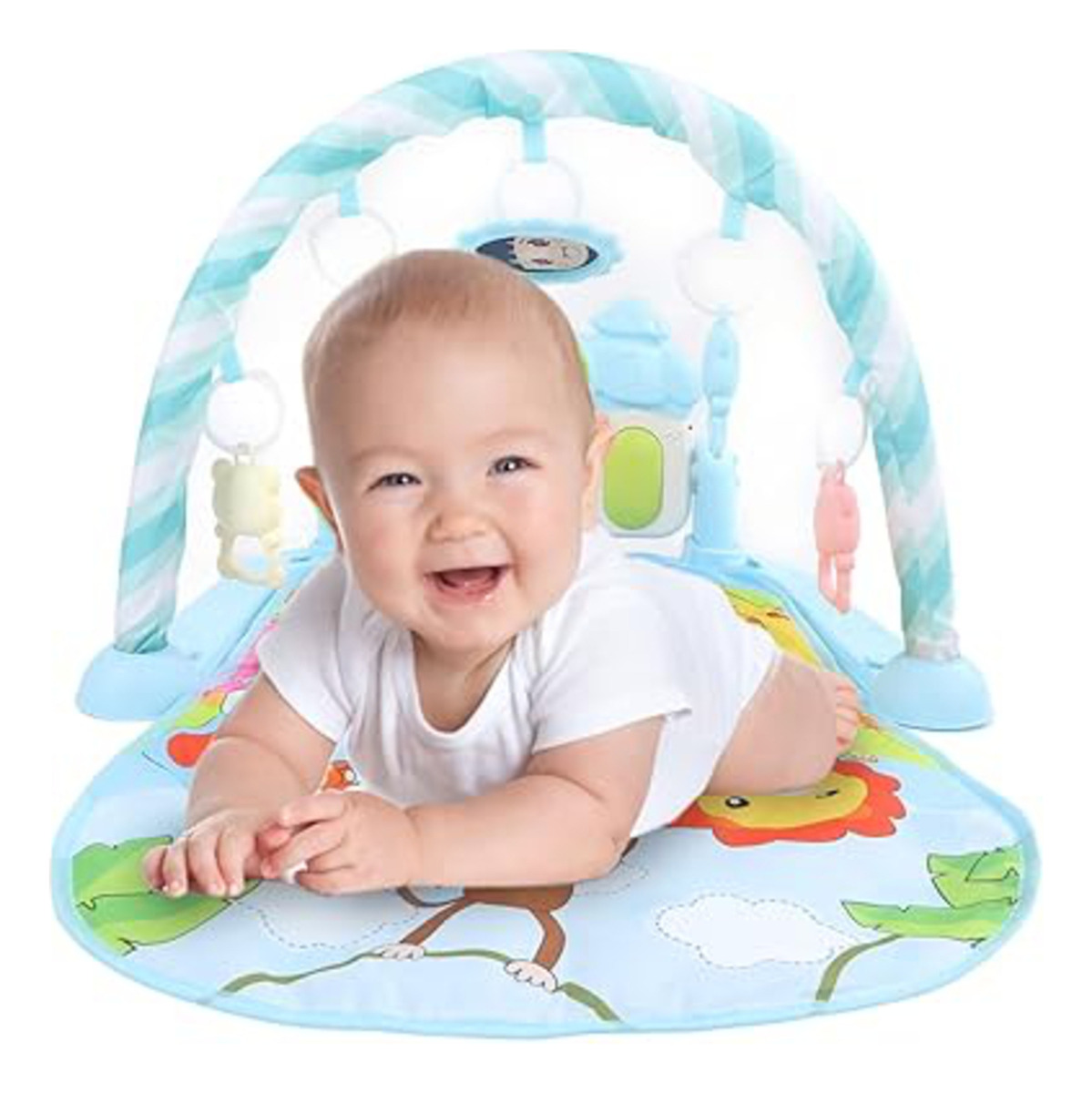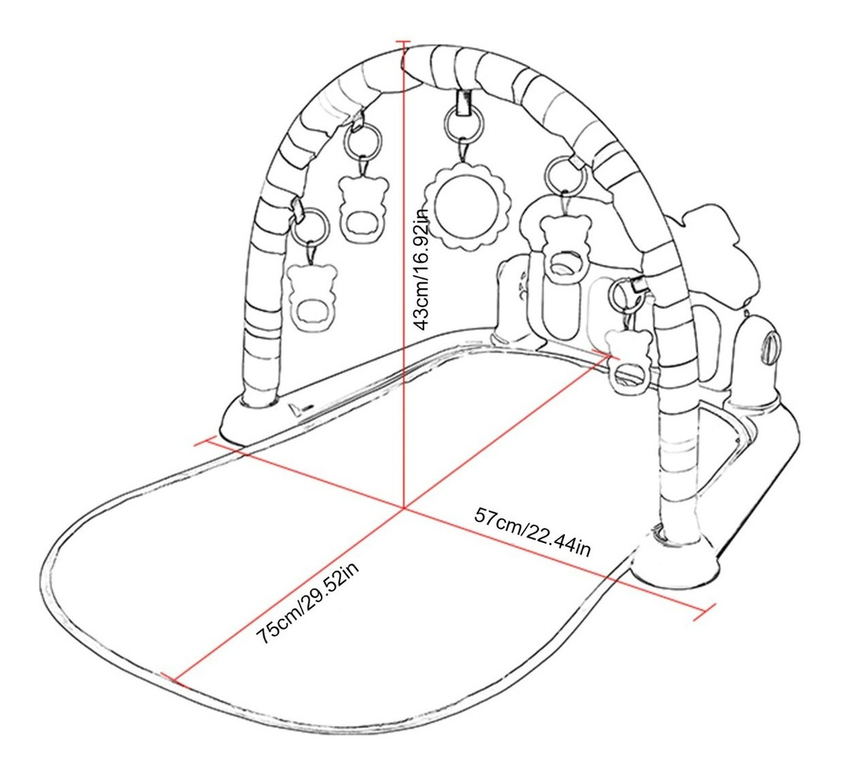Esta colorida alfombra de actividades es perfecta para estimular a tu bebé mientras juega y explora. Incluye un arco con divertidos juguetes colgantes que fomentan el desarrollo visual y táctil, además de un piano interactivo con teclas musicales que incentiva el movimiento, la coordinación y la exploración auditiva.