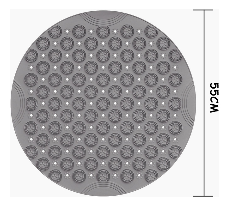 GRAN TAMAÑO Y CON PEQUEÑOS AGUJEROS: Nuestra alfombra extra grande y generosamente dimensionada 55cm de diámetro y proporciona una excelente cobertura. Muchas otras alfombras son más pequeñas y dejan áreas de tu bañera expuestas. Y mientras que otras alfombras son sólidas y crean charcos de agua debajo, nuestra alfombra cuenta con 176 pequeños agujeros en toda su extensión para permitir la circulación del agua.
