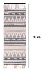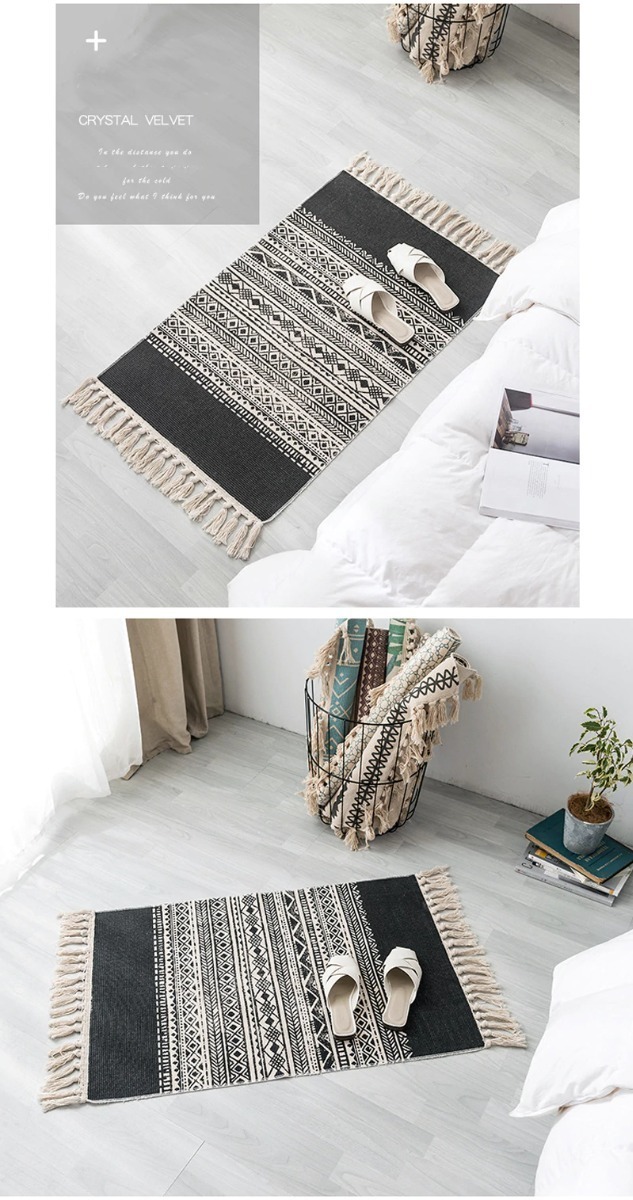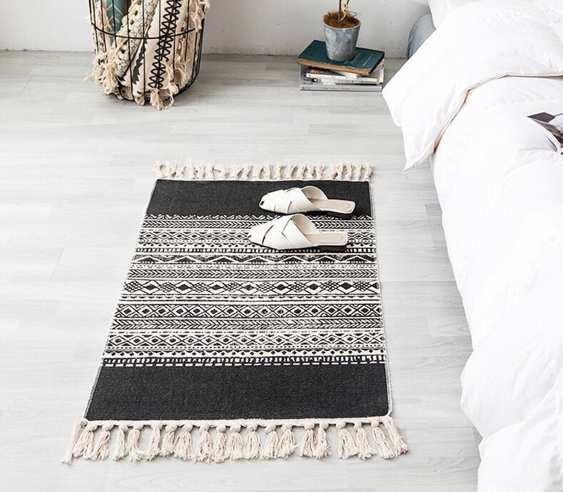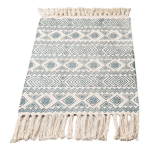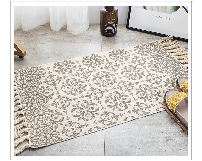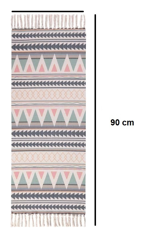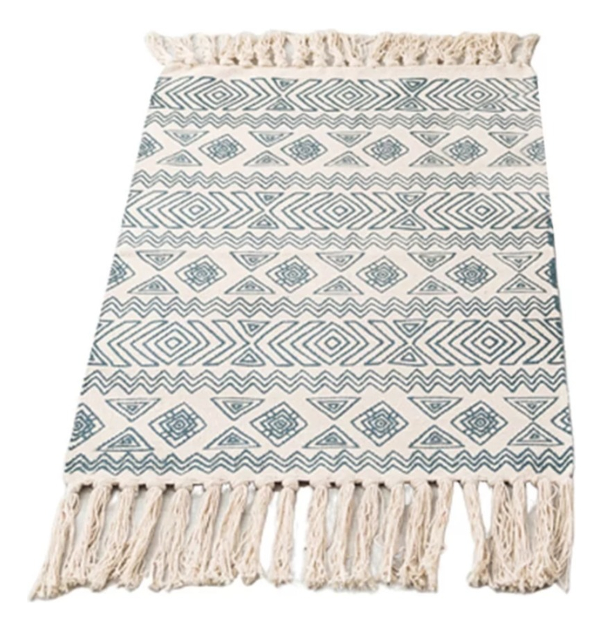 Alfombra estilo nordica, moderna. Ideal para que cada espacio quede mas acogedor. Material: lino de algodón, tejido a mano. Tamaño 90x 60 cm más borla. Limpieza: lavable Consultar diseños disponibles en estas medidas. Ideal para sala de estar, dormitorio, comedor, escritorio, recibidor, etc. Importante: la luz de la fotografía y las diferentes pantallas, puede hacer que el color del articulo en la imagen sea un poco diferente al real.