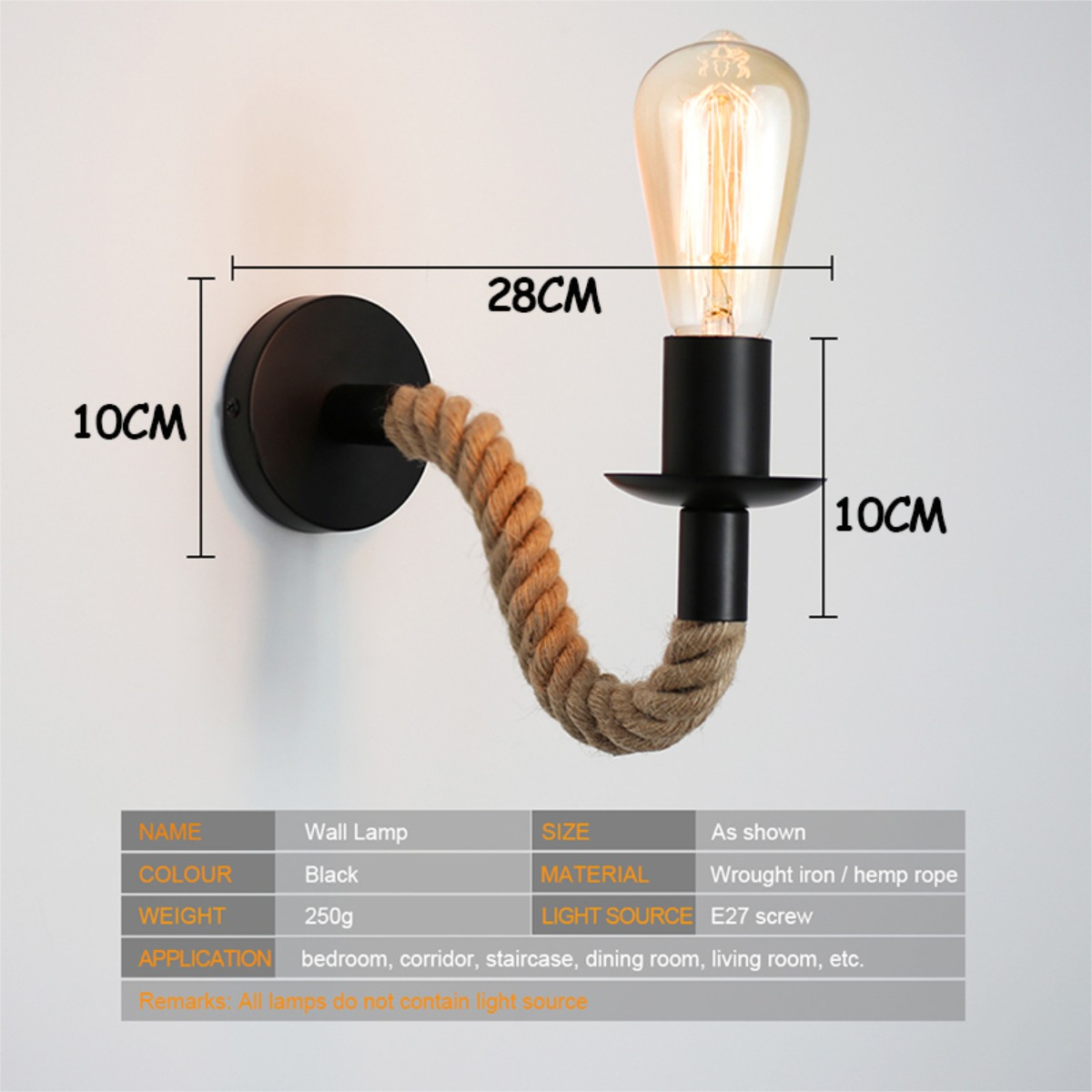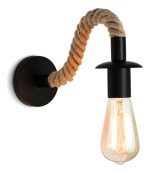 Aplique de pared estilo nórdico. Portalámparas en metal con cuello rígido recubierto por cuerda. Voltaje: 220-240v Rosca: E27