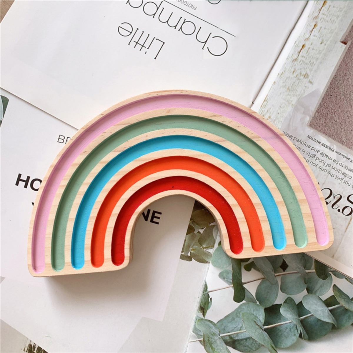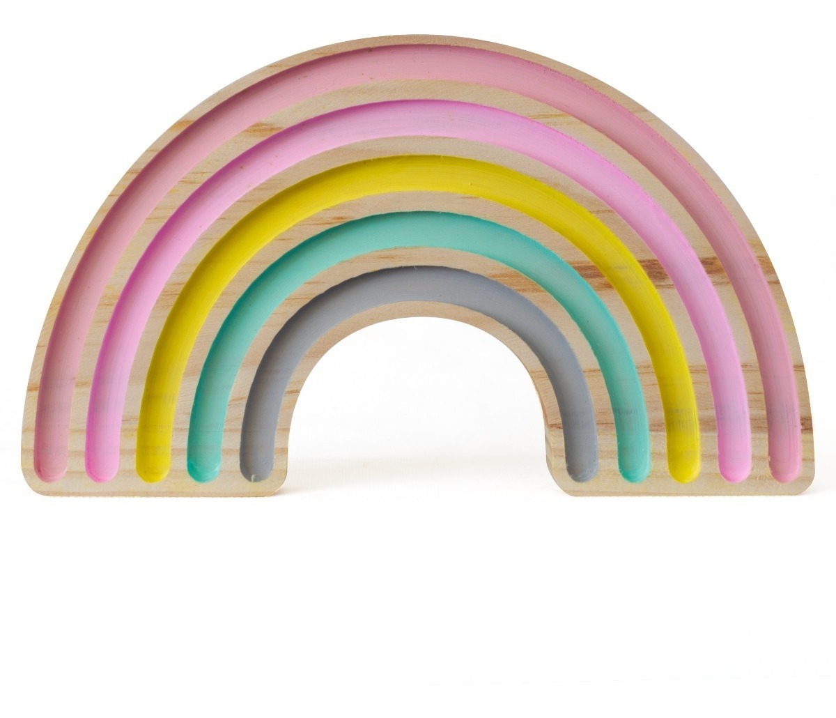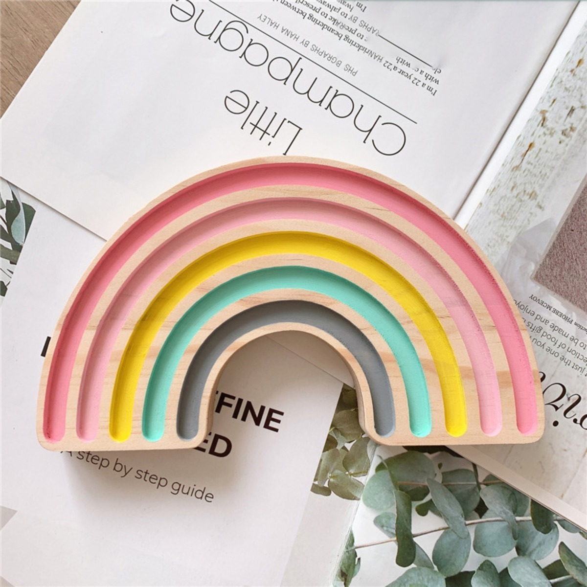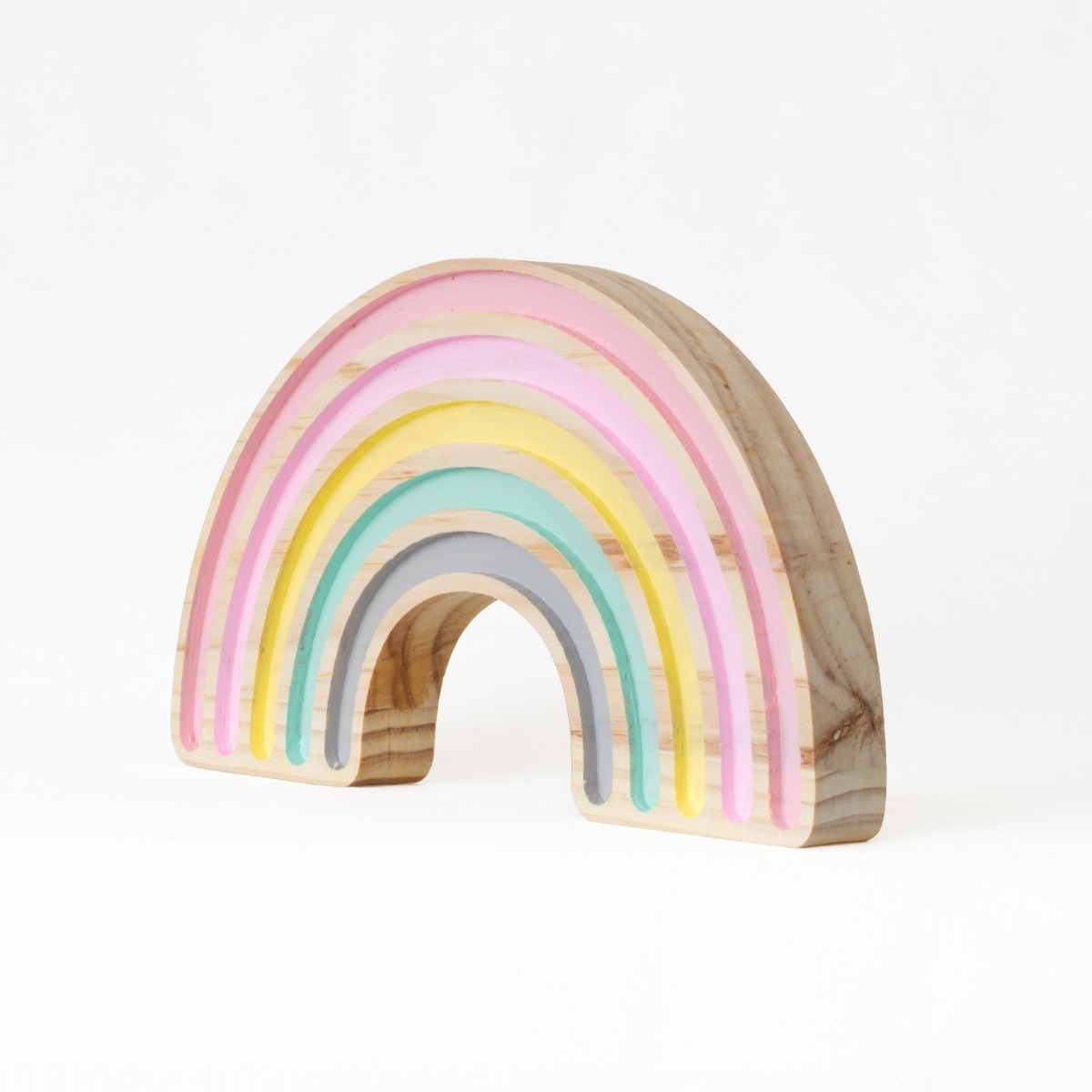Bloques decorativos de arcoiris, diferentes colores, estilo nordico/boho, fabricado en madera de pino.