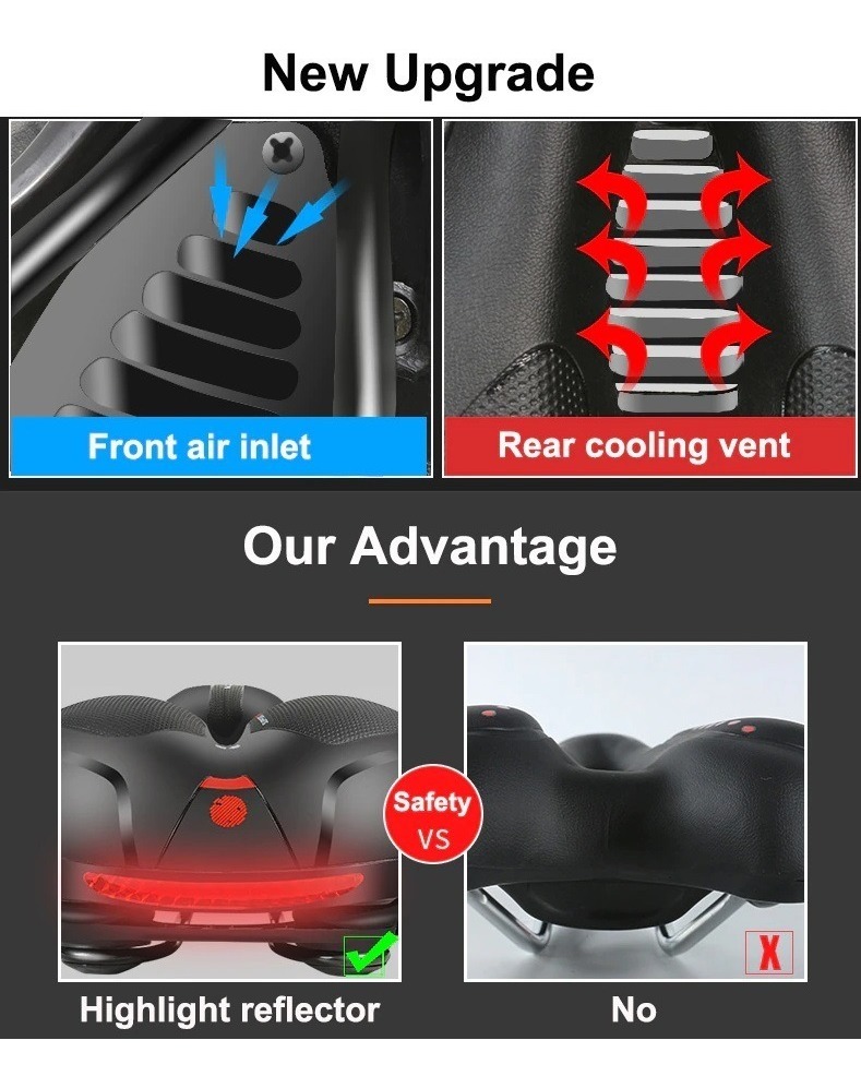 Este sillín combina diseño moderno y funcionalidad, siendo ideal para largos recorridos. Está elaborado con material elástico grueso que proporciona comodidad y transpirabilidad. Además, es ligero, fácil de limpiar y altamente duradero. Su diseño ergonómico anti prostático cuida tu salud mientras disfrutas del ciclismo.
