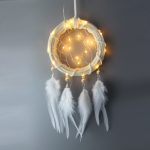 Este hermoso atrapasueños con luz es el accesorio perfecto para decorar cumpleaños, habitaciones o cualquier espacio especial. Con un diseño delicado y elegante, combina las tradicionales plumas y círculos tejidos con luces que crean un ambiente mágico y acogedor.
