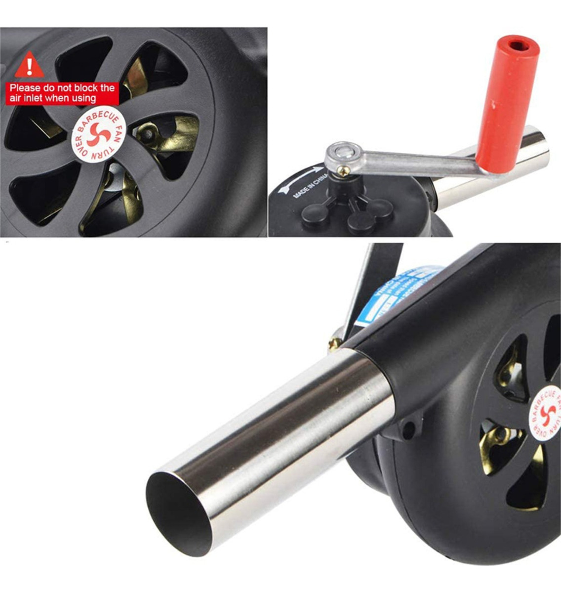 Es ligero, portátil y extremadamente cómodo de usar. Con su manivela, podrás soplar aire y aumentar la potencia del fuego de manera fácil y efectiva, logrando resultados impresionantes en tu parrilla.