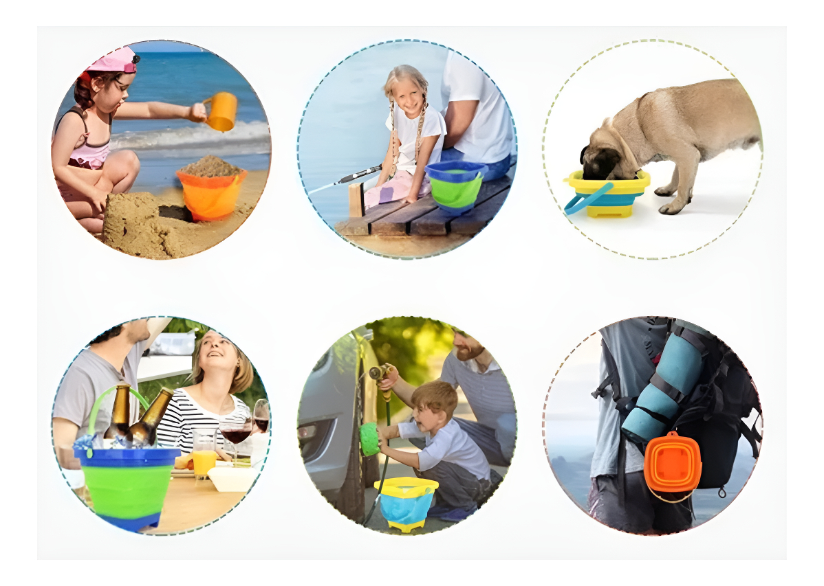 Su diseño plegable permite un fácil almacenamiento y transporte, lo que lo convierte en un accesorio muy práctico para vacaciones y paseos al aire libre. Simplemente expande el balde cuando estés listo para usarlo y luego dóblalo nuevamente cuando no lo necesites.