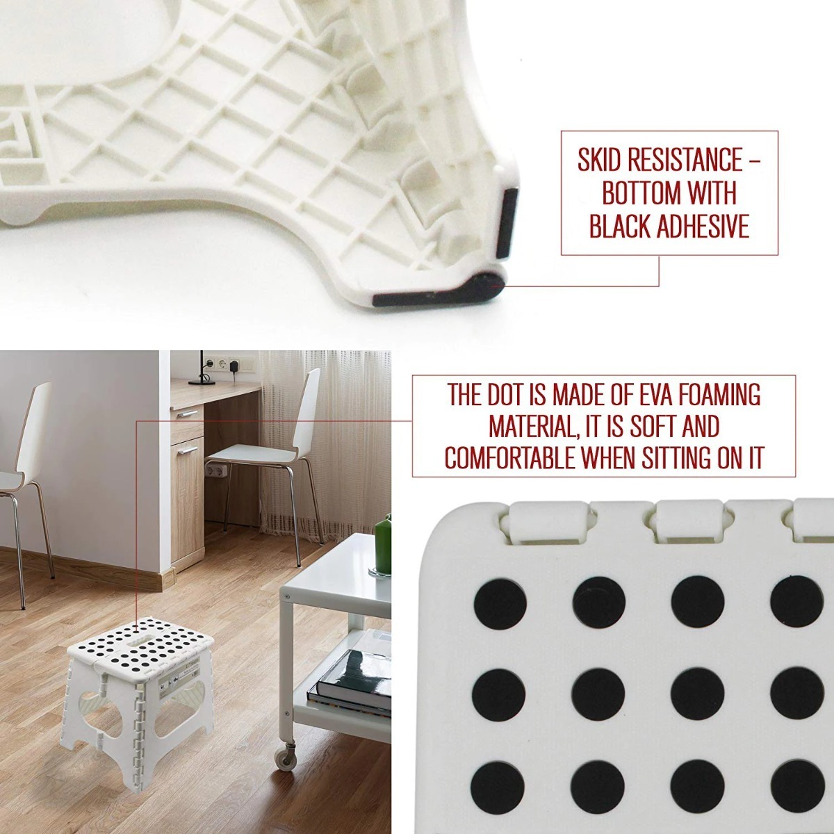 Banco plegable práctico para adultos, fabricado en plástico resistente. Con capacidad para soportar hasta 136 kg, es ideal para usar en espacios pequeños o al aire libre. Su diseño plegable permite guardarlo fácilmente cuando no se utiliza. Perfecto para jardines, hogares, oficinas o cualquier lugar que necesite un asiento adicional y fácil de transportar.