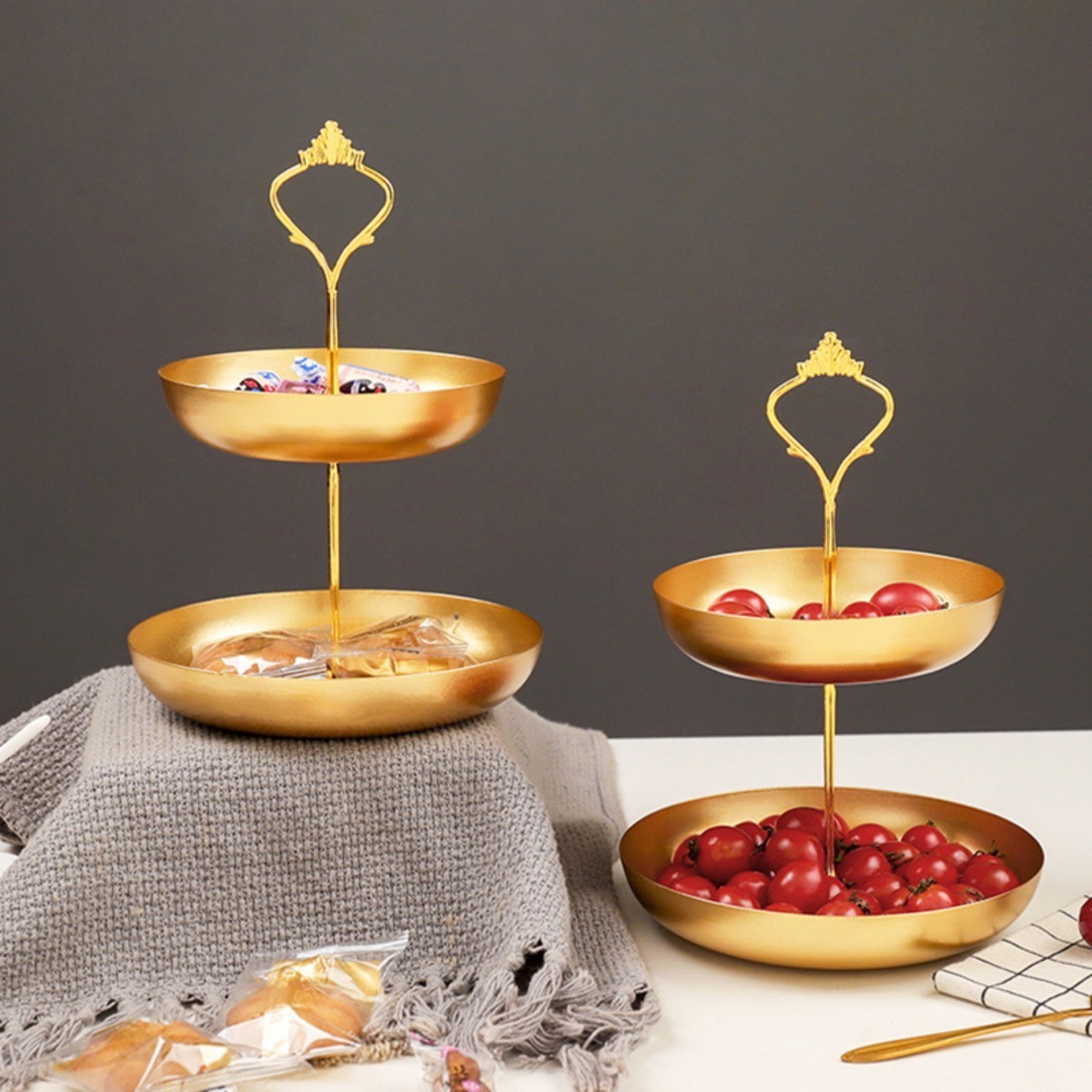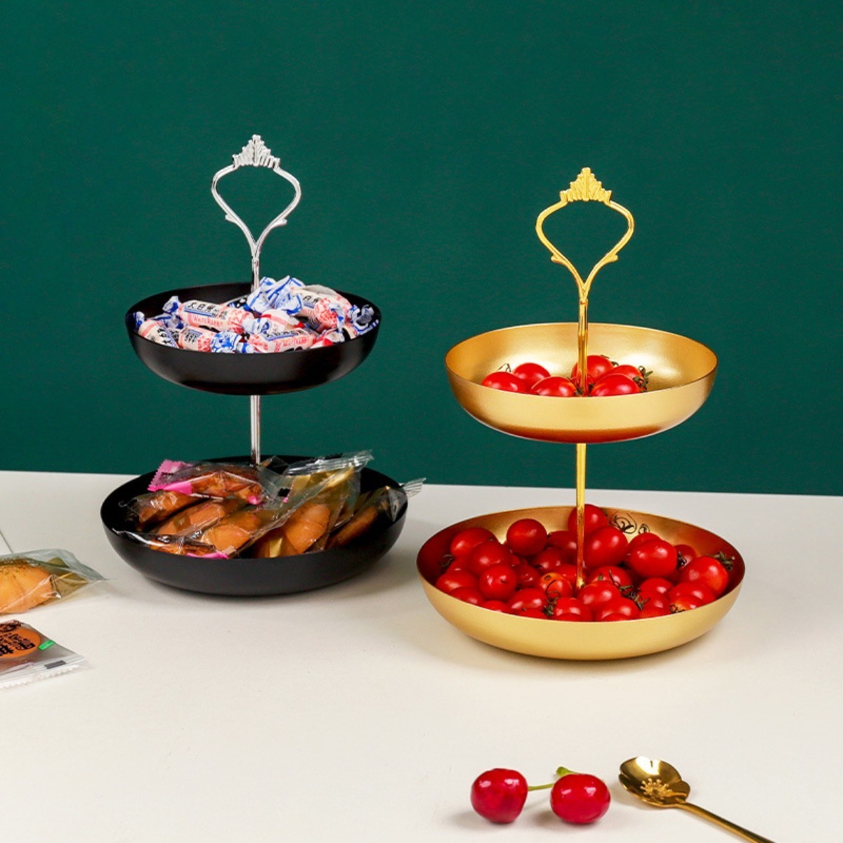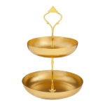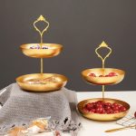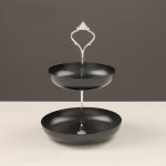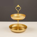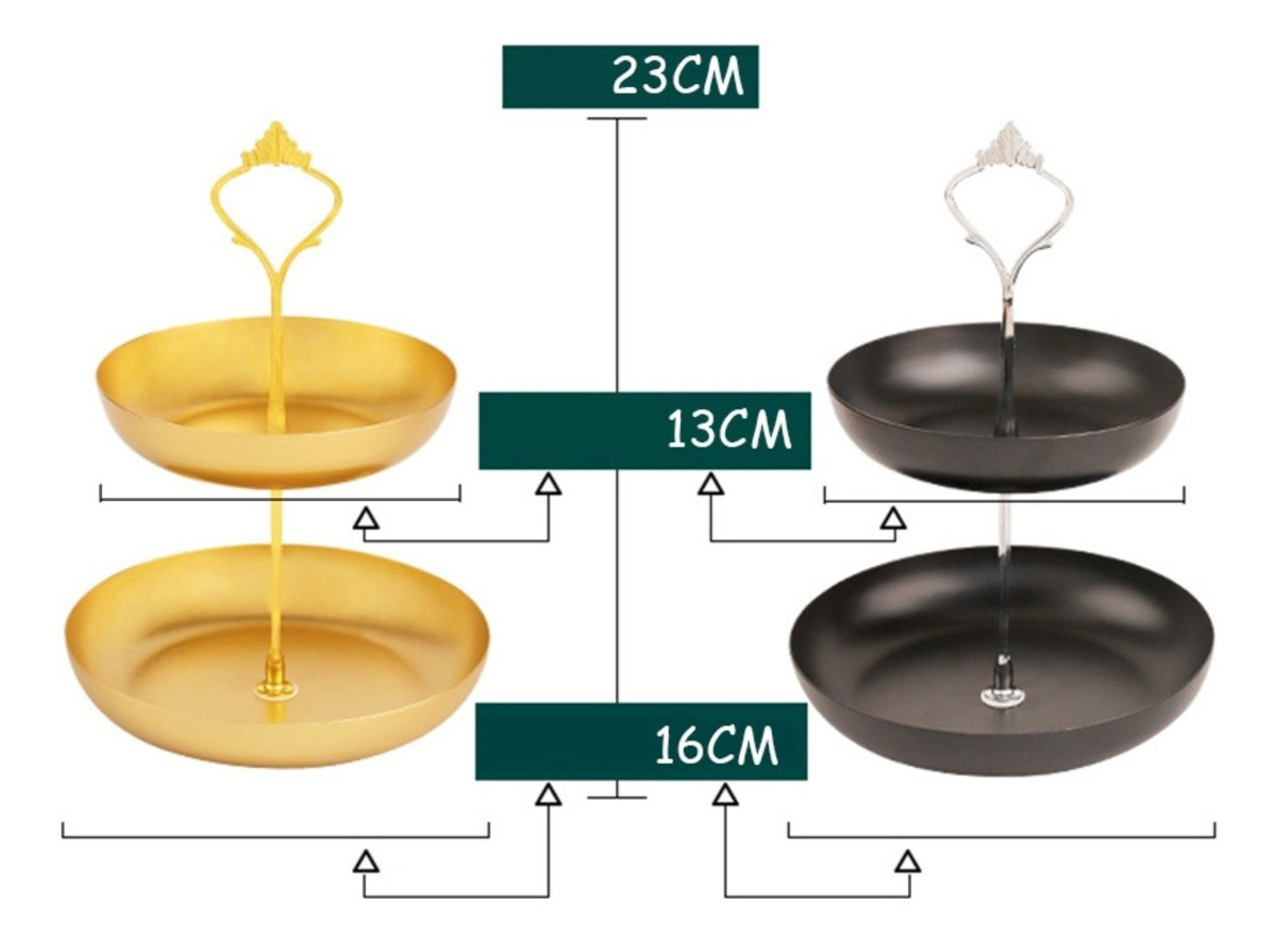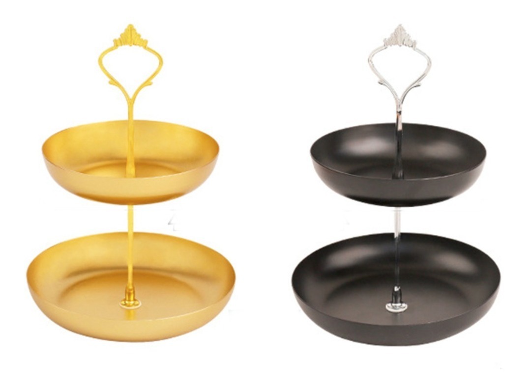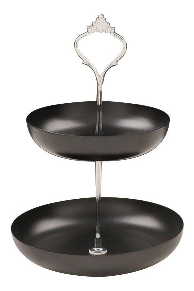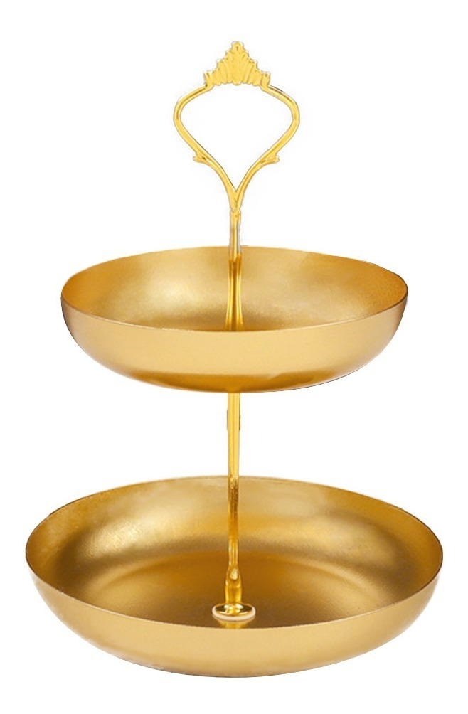 Práctica y elegante. Estas bandejas metálicas dobles son ideales para un servicio de postres, canapés, té, para usar como frutero, como organizador de joyas, o despojador para vaciar tus bolsillos al llegar a casa. Están fabricadas en hierro y su fabricante recomienda que se laven a mano y se sequen en el momento.