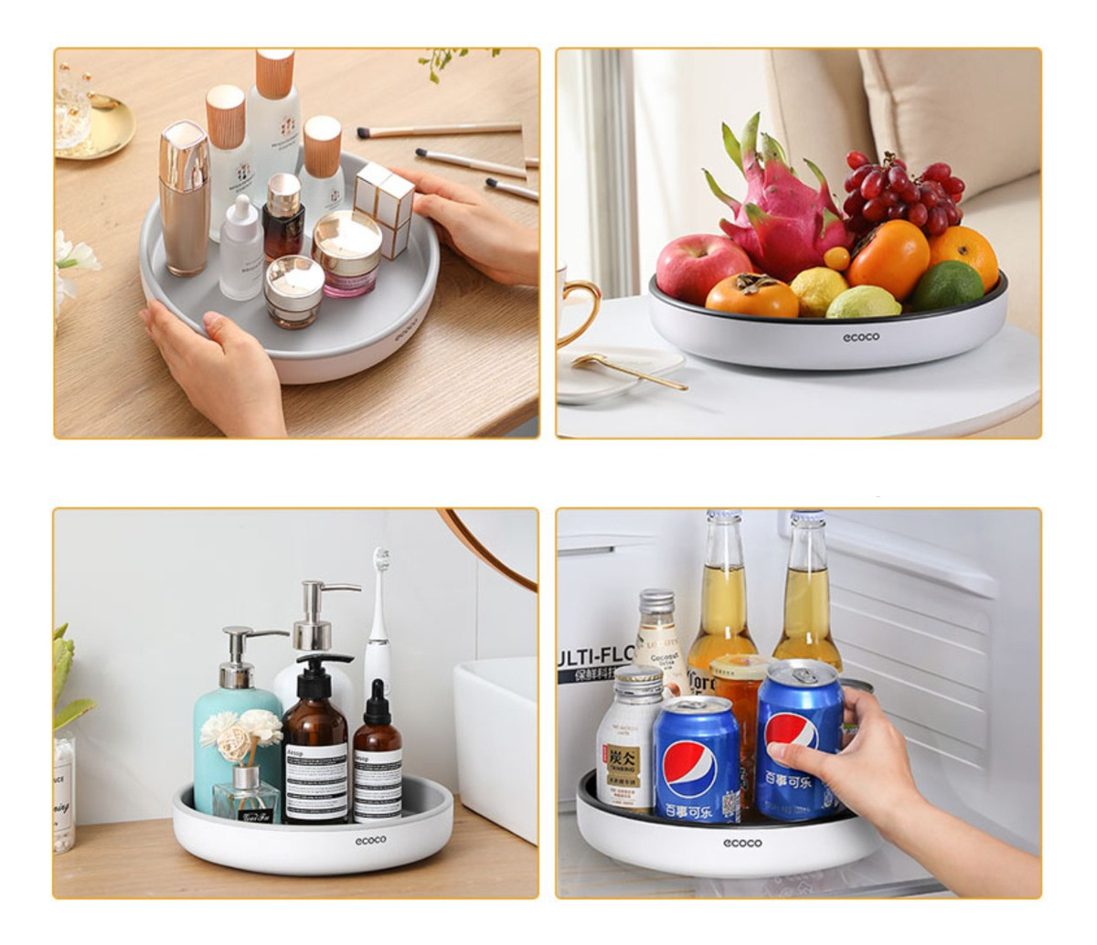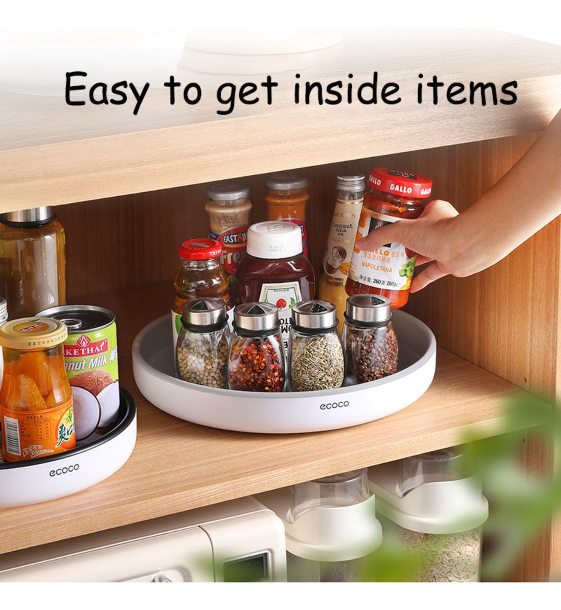 Organiza tus especias, maquillaje o pequeños artículos con esta práctica bandeja giratoria. Diseño funcional que permite un acceso fácil y rápido a todo su contenido. Ideal para cocina, baño o cualquier espacio del hogar.