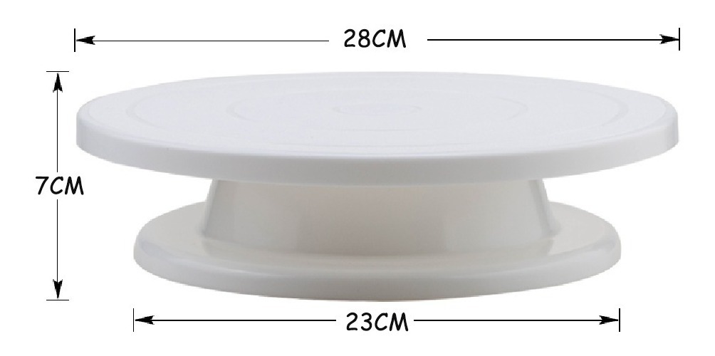 PLATO GIRATORIO BASE PARA TORTAS IDEAL DECORACIÓN FIESTA REPOSTERÍA. MEDIDA DE DIÁMETRO: 28 cm. MATERIAL: PLÁSTICO. PRESENTACIÓN EN CAJA.