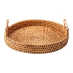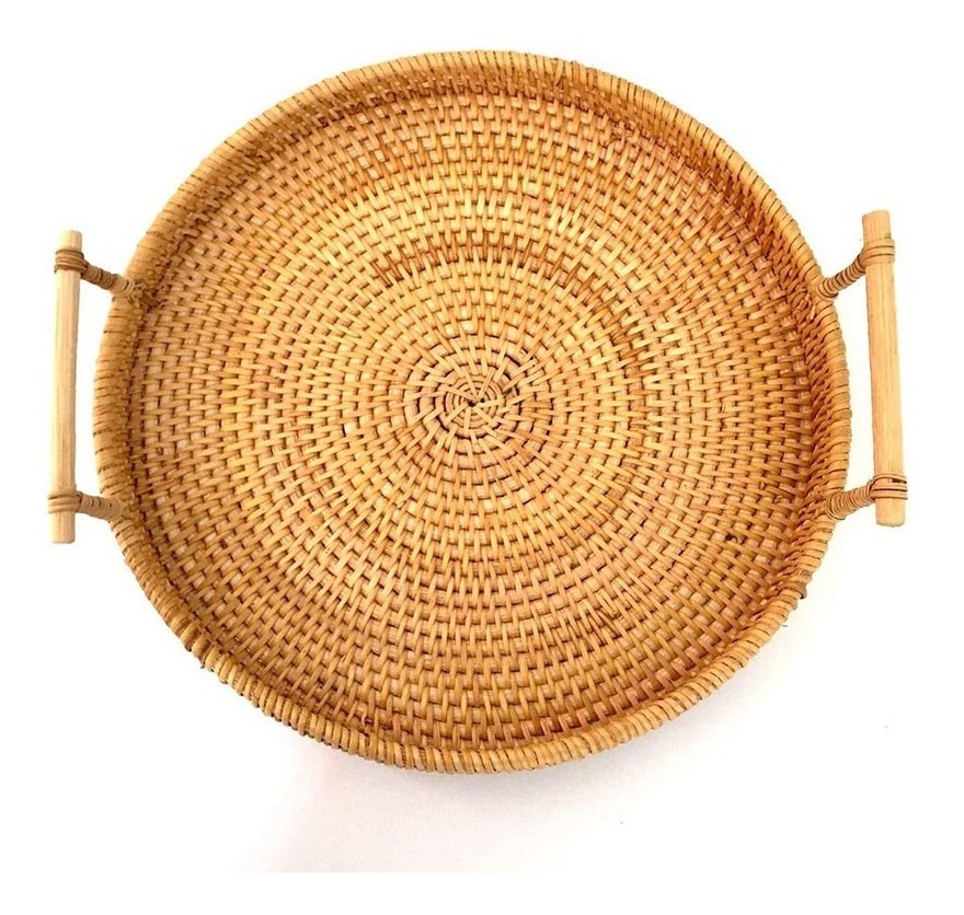 Bandeja Rattan Con Asas Circular Rustica Decorativa 28cm