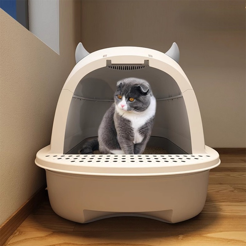 Arenero para gatos con techo.