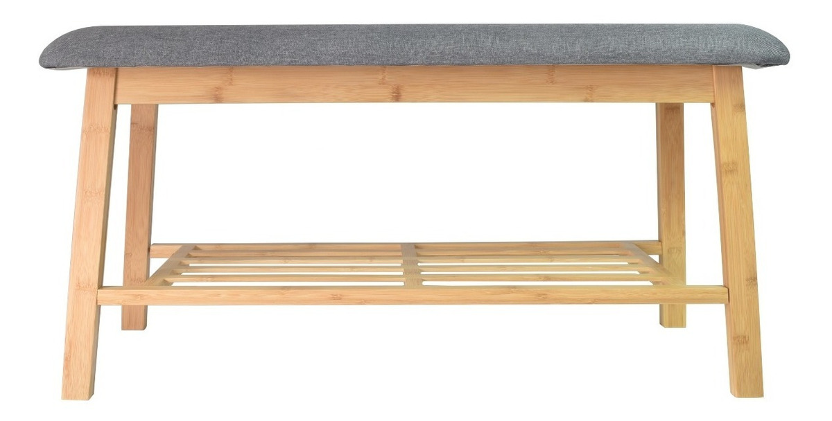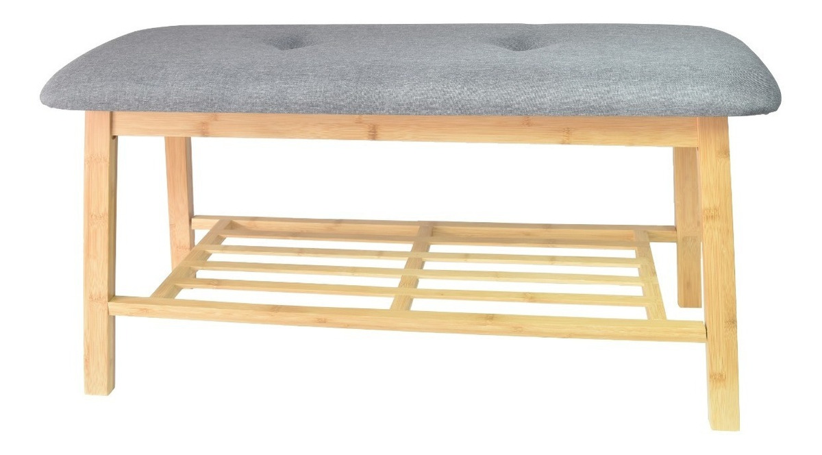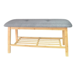 Especificaciones: Tipo de artículo: Zapatero Asiento: Cojín capitoneado en tela gris. Material: bambú Color: Burlywood Tamaño: 90*30*45cm (aprox.)