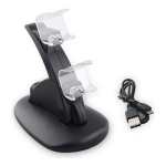 – Estación de carga y soporte para dos joystick de PS4. Para que comience a cargar se puede conectar el cable USB del soporte/cargador al PlayStation 4, pc o cualquier otro dispositivo que tenga entrada USB. – Carga los dos joystick de forma simultanea. – Las luces LED indican la carga del joystick, se apagan automáticamente cuando el joystick está completamente cargado. – Contiene un chip protector incorporado que protege a sus joysticks de sobrecarga, sobrecalentamiento, sobrevoltaje, etc.