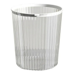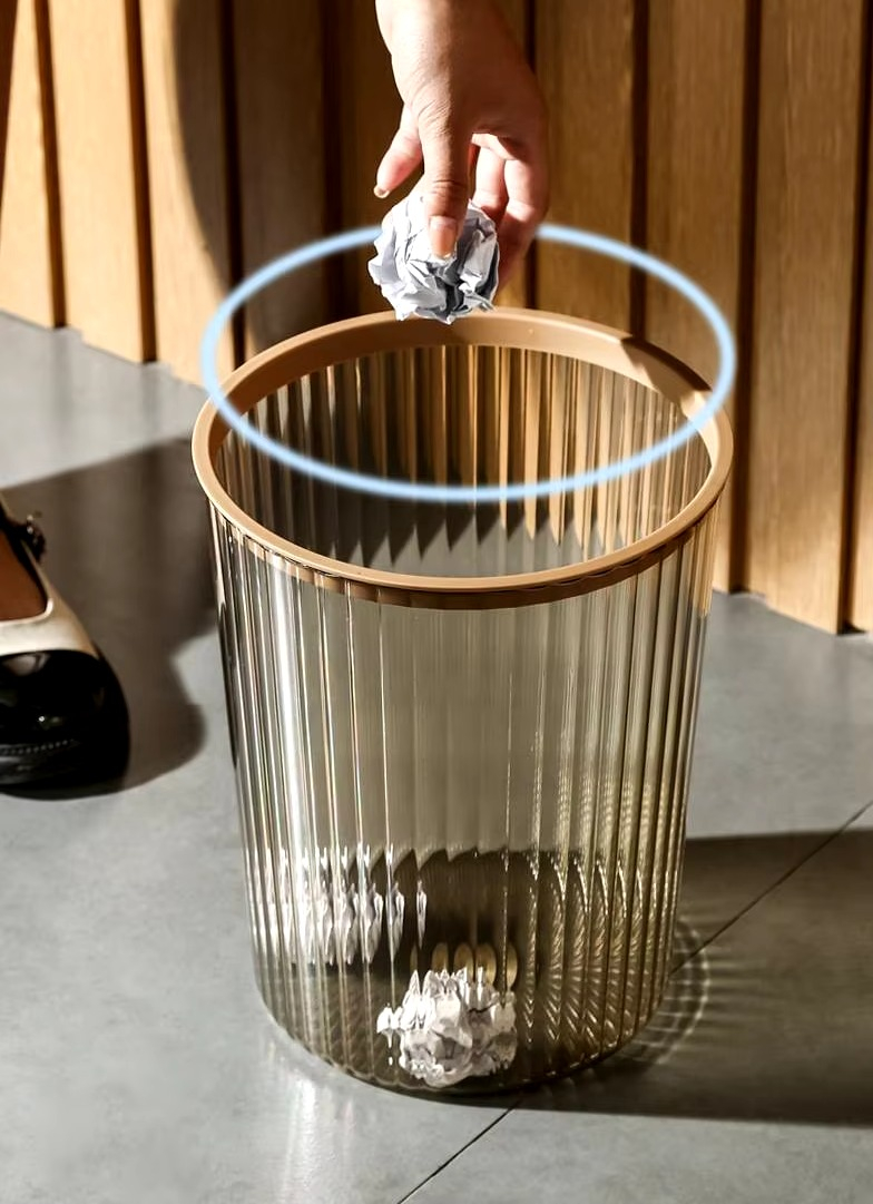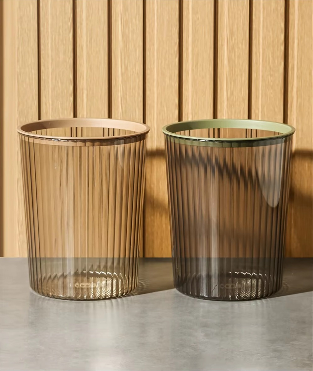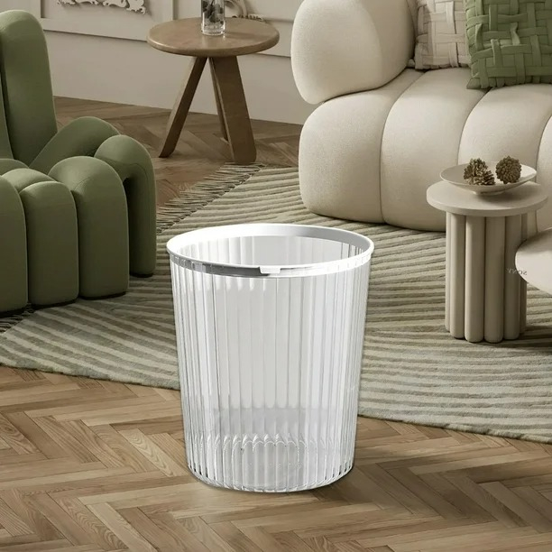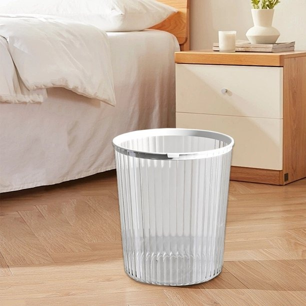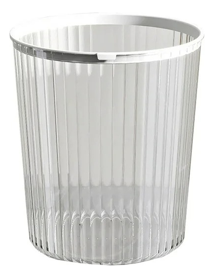 Esta elegante papelera de plástico transparente, con diseño abierto y líneas modernas, es perfecta para mantener cualquier espacio ordenado. Ideal para oficinas, baños o habitaciones.