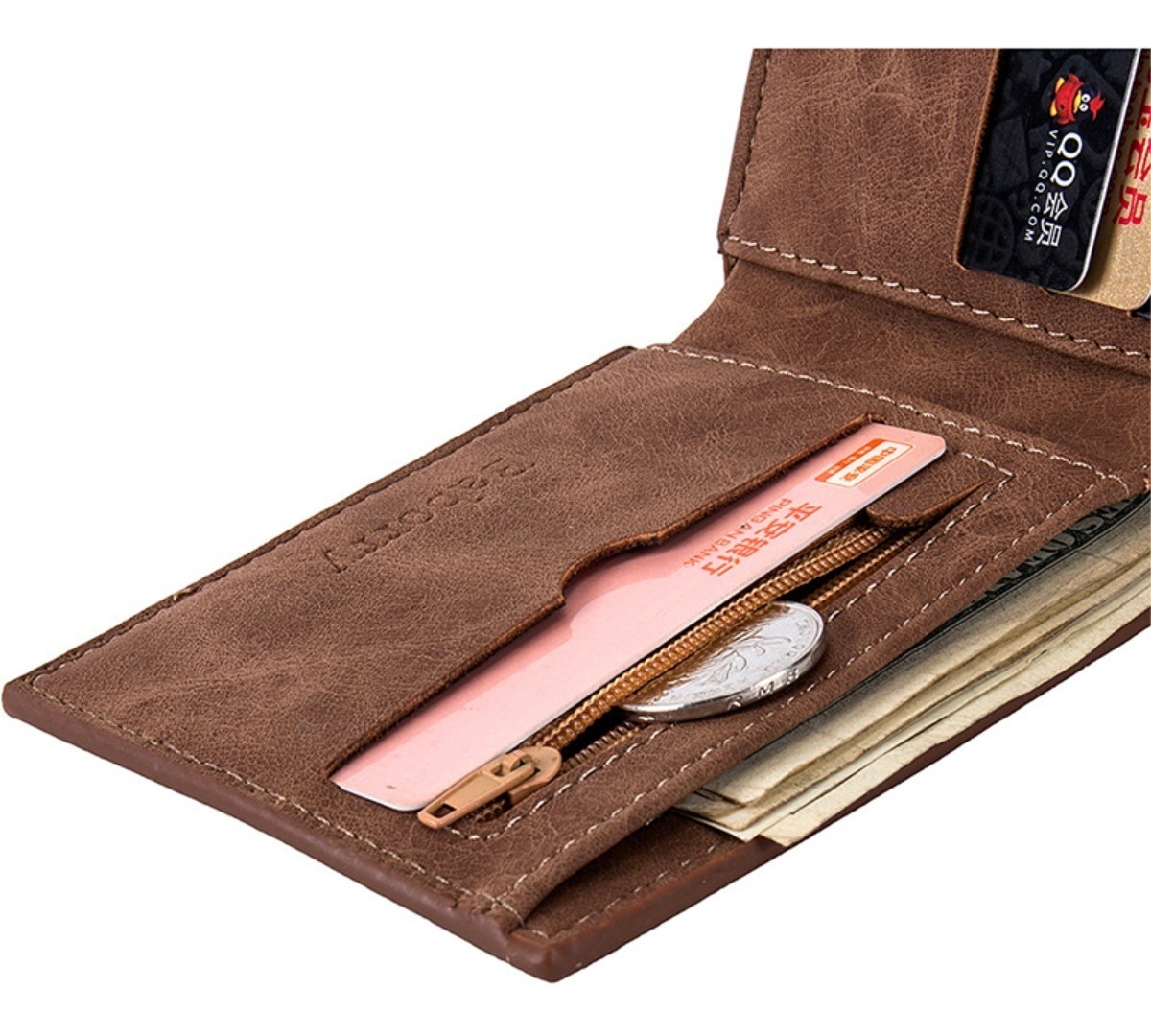 Billetera moderna para hombre, elaborada en cuero PU nobuck de alta calidad. Diseñada para ofrecer comodidad y estilo, cuenta con espacio amplio para billetes, múltiples compartimentos para tarjetas y un bolsillo con cierre para monedas. Perfecta para quienes buscan un accesorio funcional y elegante. Ideal para el uso diario o como regalo.