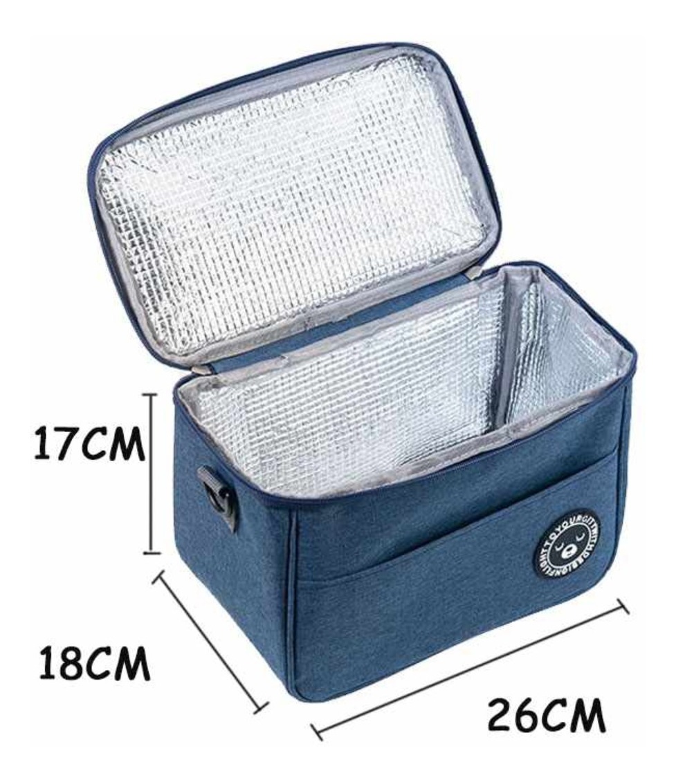 Medidas: Con dimensiones aproximadas de 17 cm de altura, 18 cm de ancho y 26 cm de largo, esta bolsa ofrece suficiente espacio para tus recipientes de alimentos, bebidas y snacks.