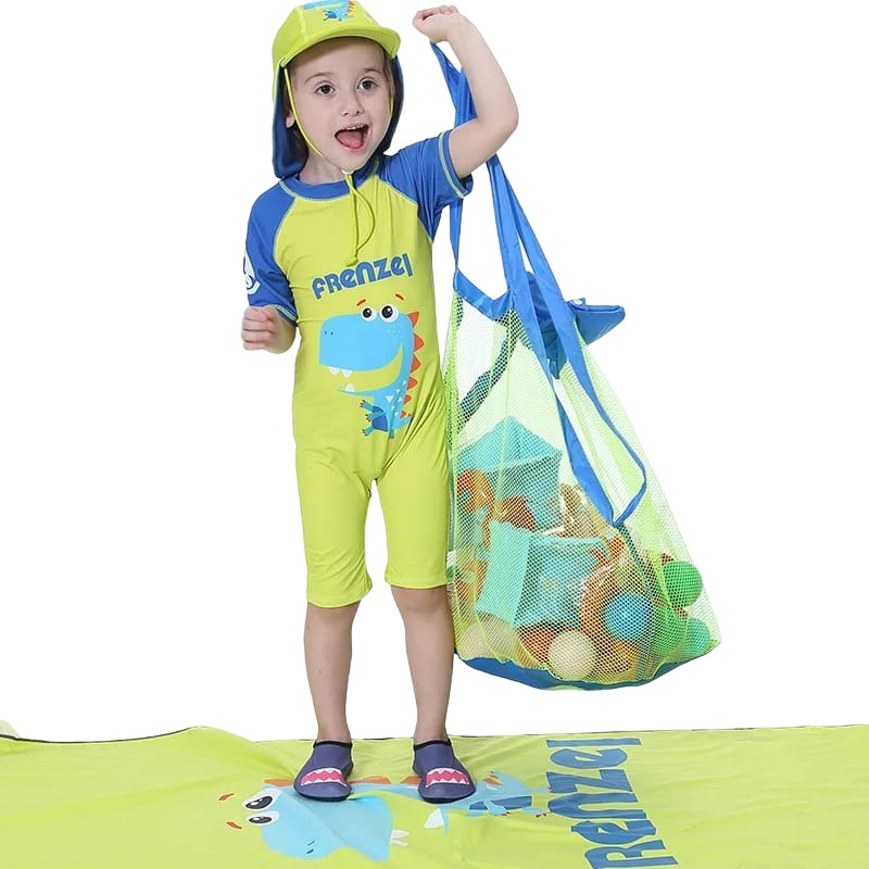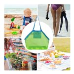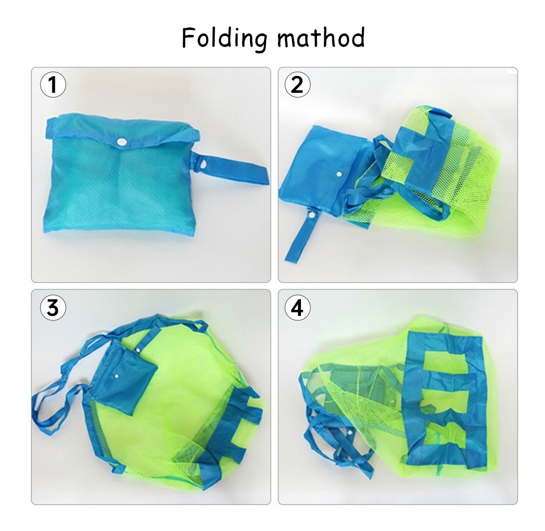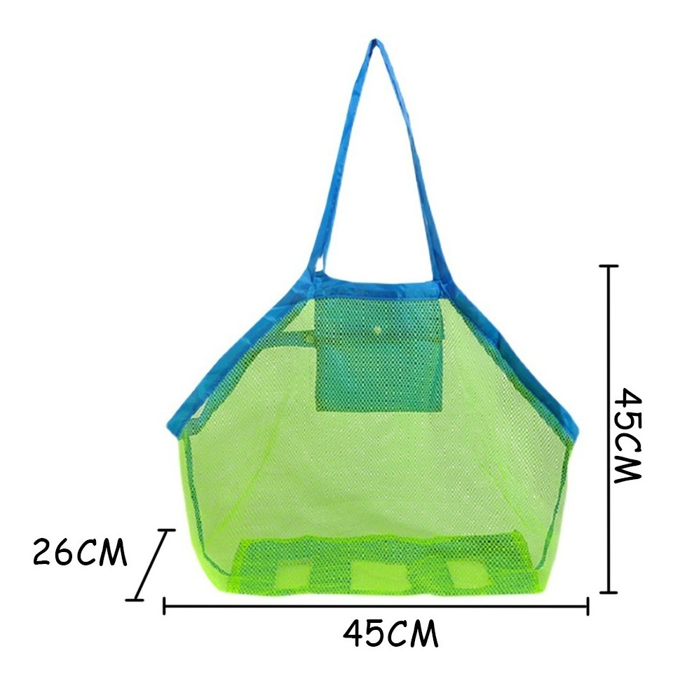 Bolsa plegable estilo red chismosa para juguetes de playa, atrículos de verano o mandados. Material:Poliéster Color: azul y verde