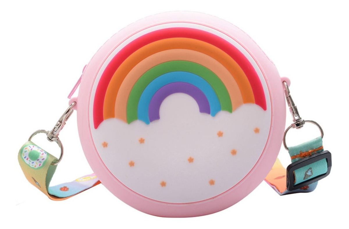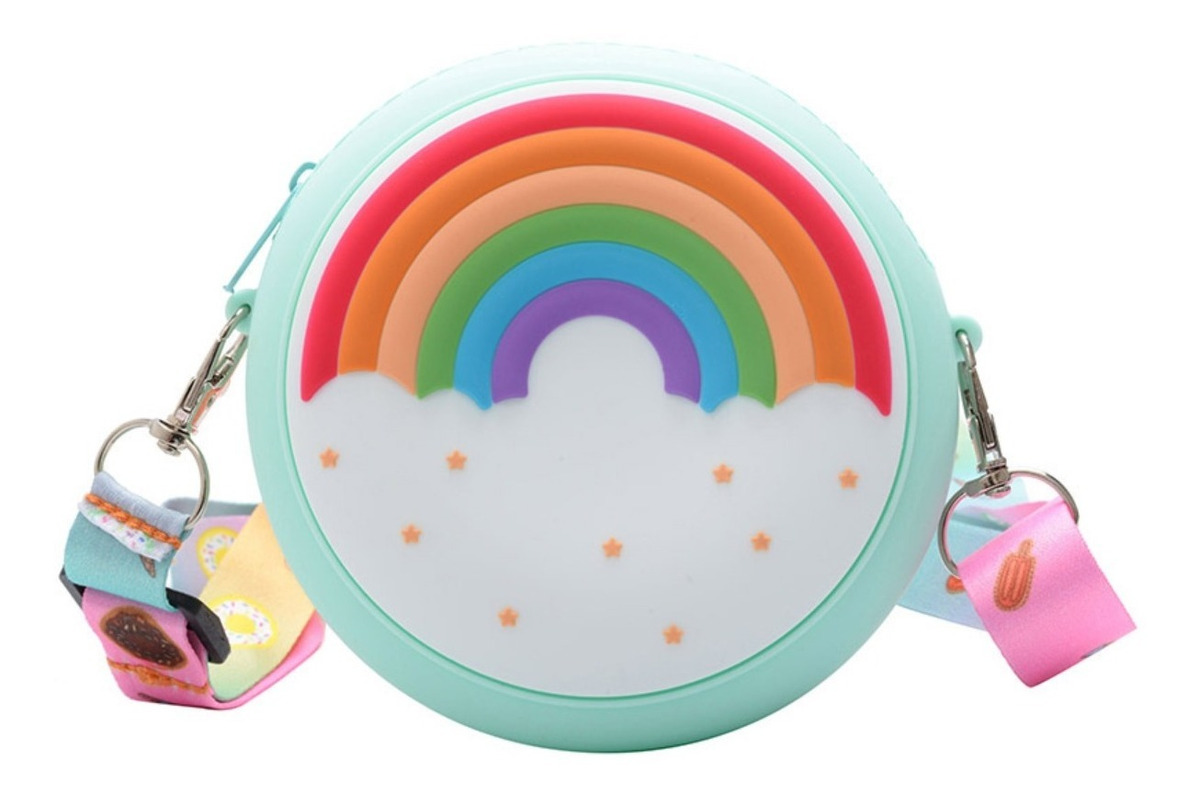 Mini Bolso bandolera para niños, niñas y demás. Fabricado en goma siliconada, con cierre. Incluye cinta para colgárselo.