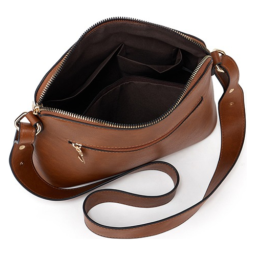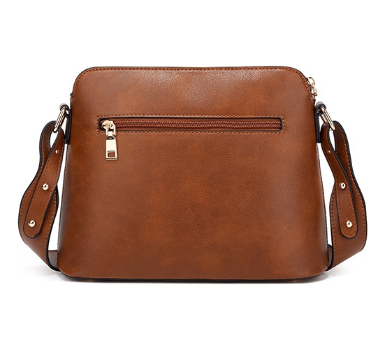 Cartera bandolera fabricada en cuero PU de alta calidad, en su parte inferior cuenta con cuatro bolas metálicas para evitar el desgaste de la misma. Cuenta con un bolsillo exterior de doble cierre en la parte delantera y un bolsillo de un solo cierre en la parte trasera. En su parte superior cuenta con el compartimento principal con cierre de punta punta el cual permite aprovechar al máximo su capacidad. En su interior encuentras dos bolsillos sin cierre y uno con cierre. Esta bandolera / cartera cuenta con una correa ajustable con remaches.