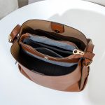 Cartera estilo bolso fabricada en cuero PU de alta calidad, en su parte inferior cuenta con cuatro pies metálicos para evitar el desgaste de la misma.