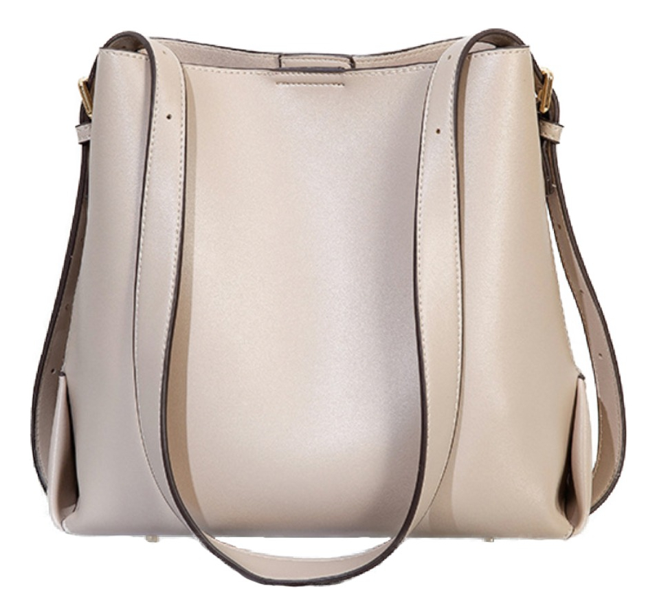 Sus herrajes son de terminación brillosa/dorada y cuenta con una correa para llevarla al hombro o cruzada, la misma es extensible en ambos extremos gracias a un sistema estilo cinturón.
