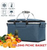 Portátil y plegable: el diseño del mango plegable es conveniente para que lo lleves contigo. Puedes doblar fácilmente la cesta de picnic para ahorrar espacio de almacenamiento. El forro de la cesta de picnic es fácil de limpiar con toallas de papel. Esta cesta plegable es muy adecuada para almuerzo, picnics, festivales de música, compras en supermercados y viajes al aire libre. Una cesta reutilizable puede hacer todo.