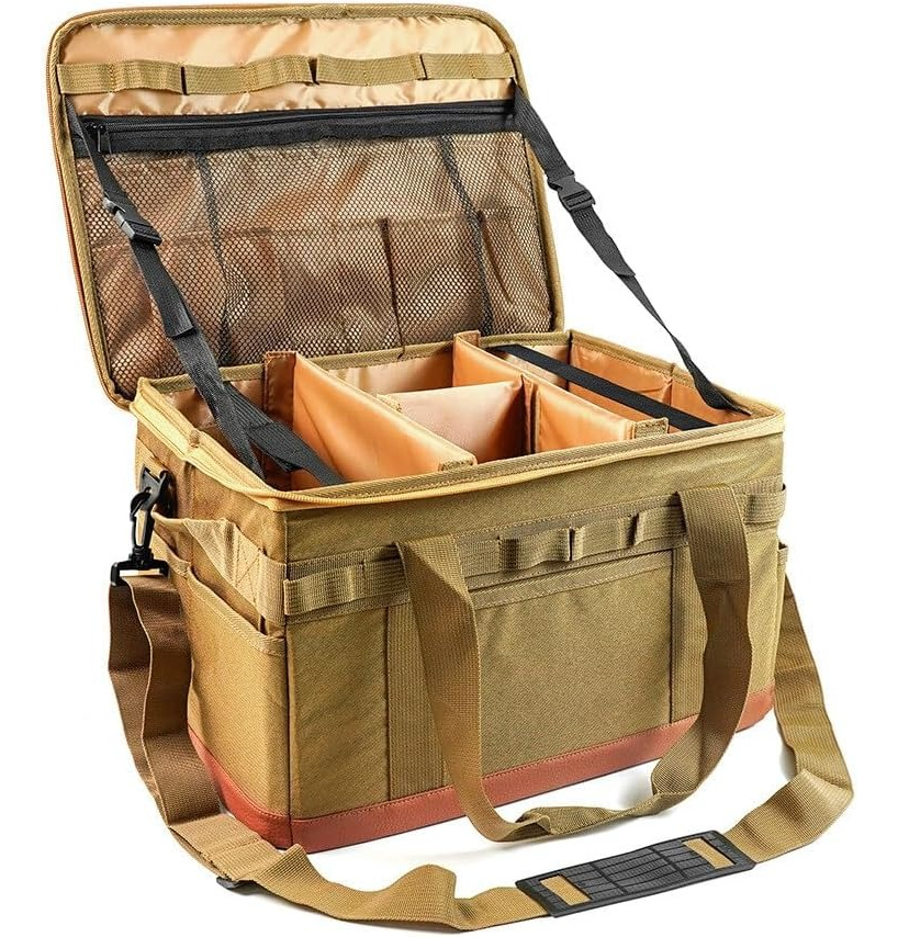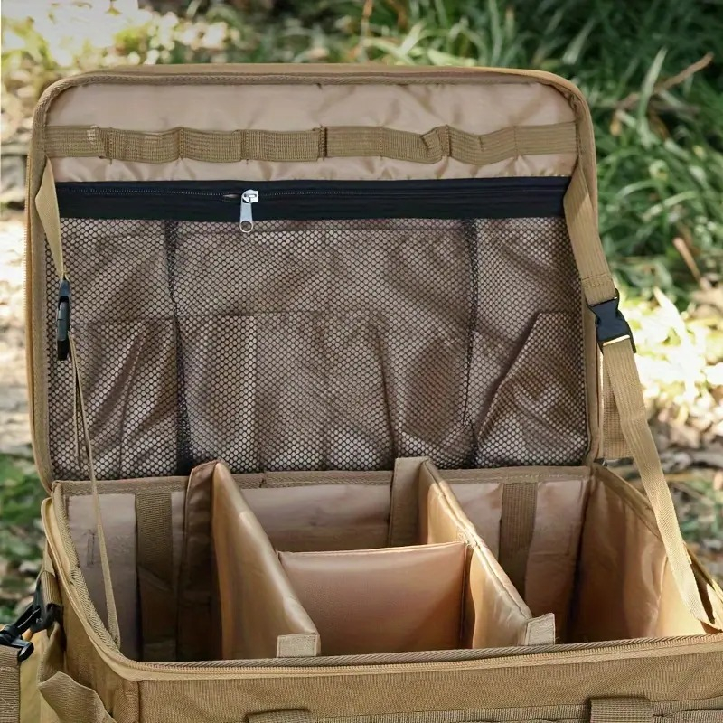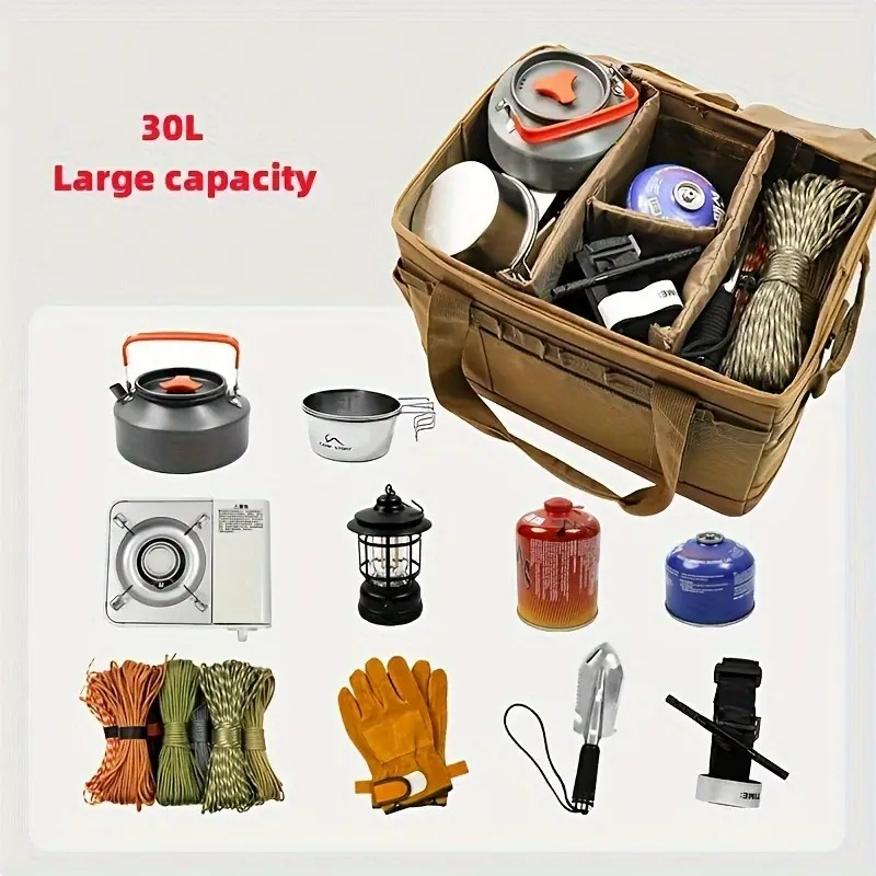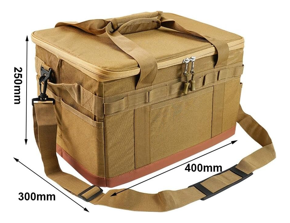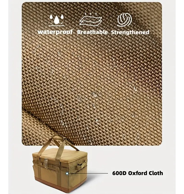 Multifuncional. Nuestro bolso para acampar es perfecta para guardar utensilios de cocina, sartenes, estufas, tazones y también frutas, bebidas y almuerzos. También puede utilizarla como organizador de baúl. Es un bolso versátil para pescar, senderismo y viajar.