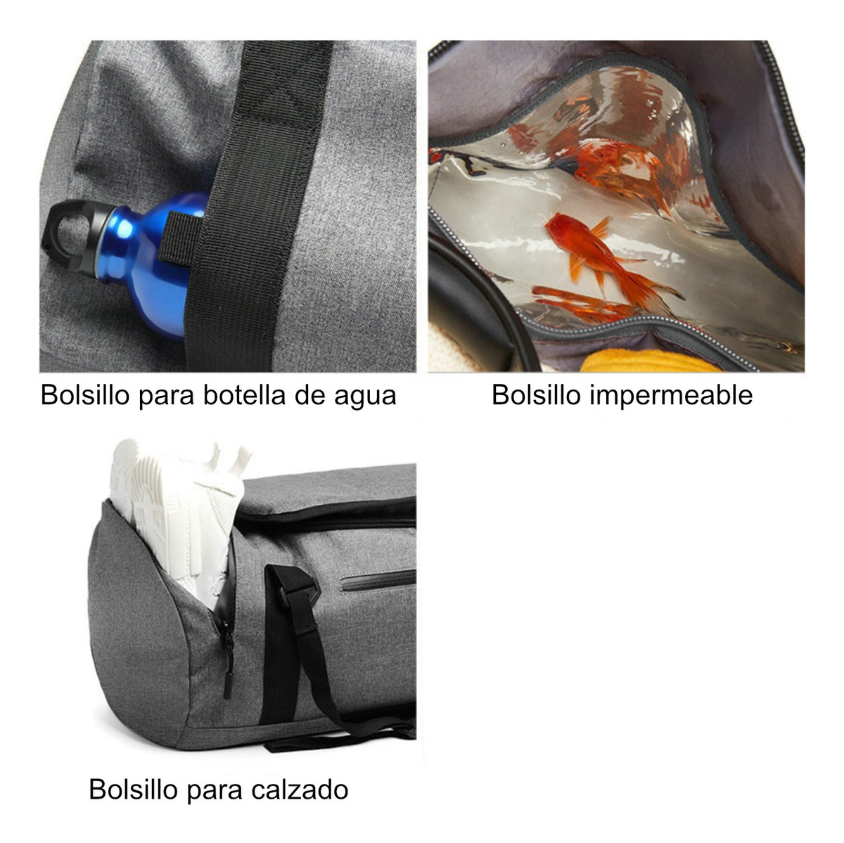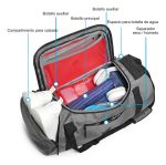 Compartimento para calzado Bolsillos auxiliares internos y externos Slot para botella de agua, Separador interno para secos / húmedos