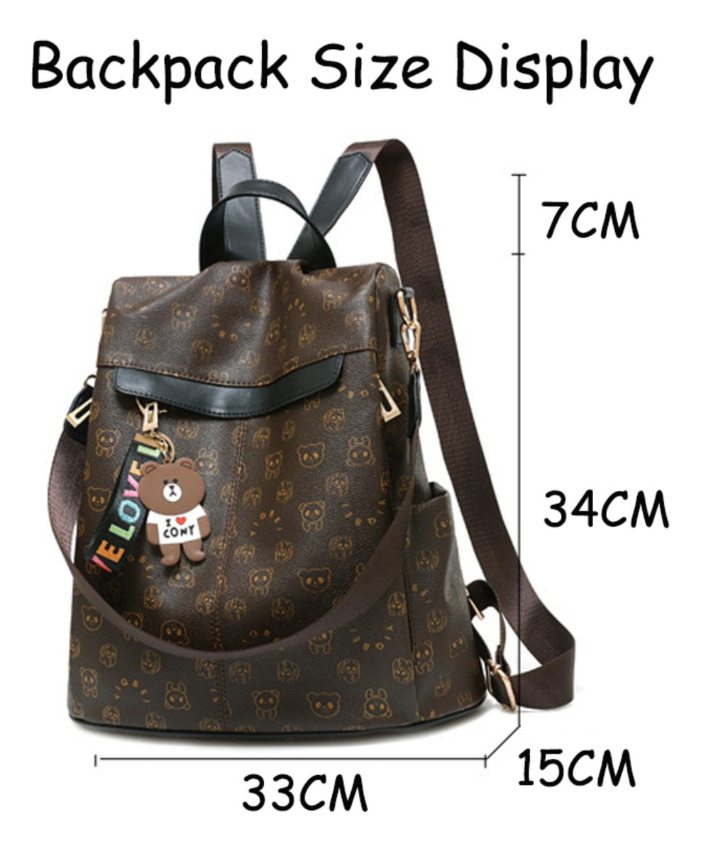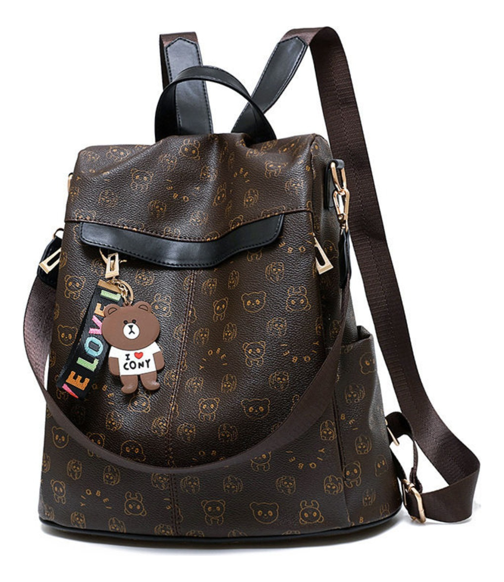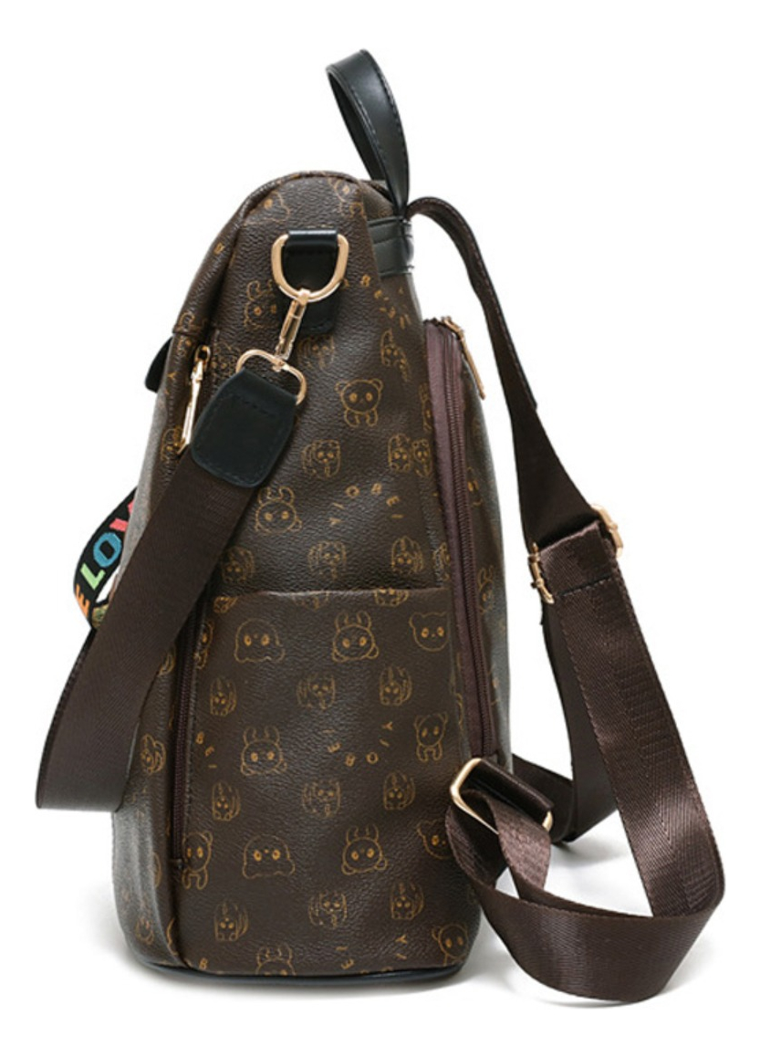 Bolso Mochila Antirrobo Gran Capacidad En Pu Estampado