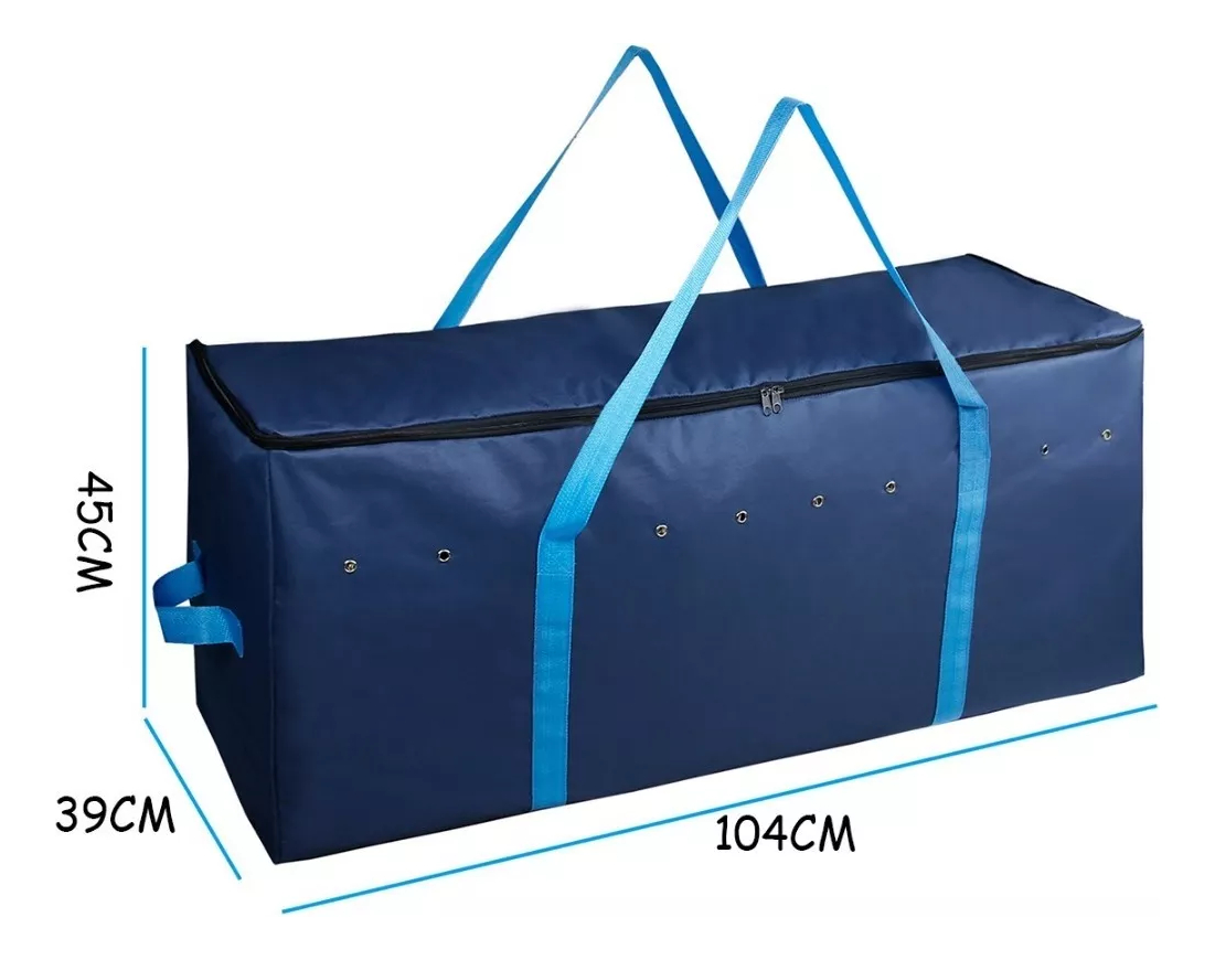 Este bolso multiuso es perfecto para mudanzas, viajes o almacenar objetos de gran tamaño. Con 104 cm de largo, ofrece una gran capacidad para transportar todo tipo de objetos. Está fabricado con materiales resistentes que soportan el peso y el uso intensivo, garantizando durabilidad y seguridad.
