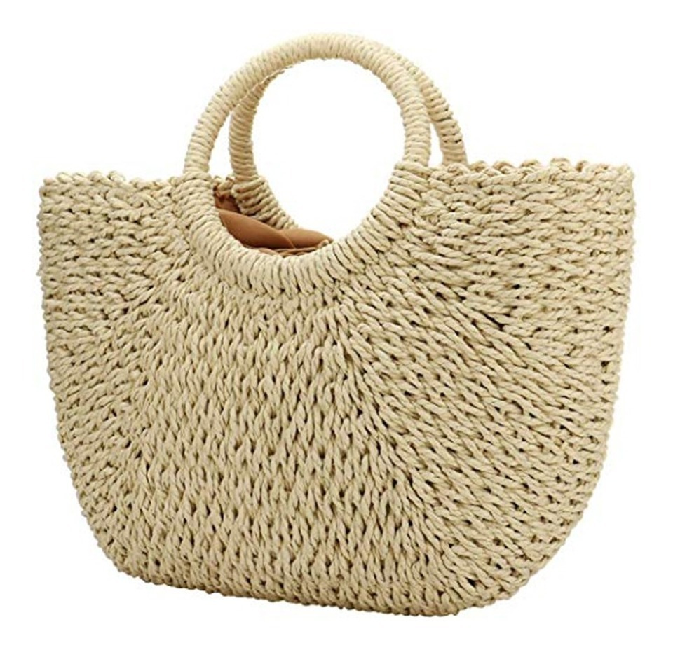 – Bolsa de verano: forma redonda, diseño cruzado y hueco, hecha a mano de materiales respetuosos con el medio ambiente, poliéster y algodón interior hace una bolsa de verano perfecta para mujeres que es duradera, a la moda.