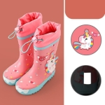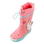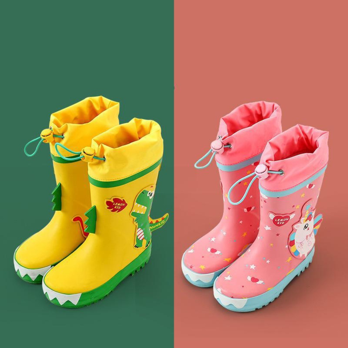 Botas de lluvia antideslizantes para niños y niñas. ¡Con caña ajustable para evitar que la lluvia entre en ellas y moje medias o pantalones! Fabricadas en PVC Las botas vienen con una pequeña cinta gris reflectiva en el talón para mayor seguridad los días de lluvia/niebla.