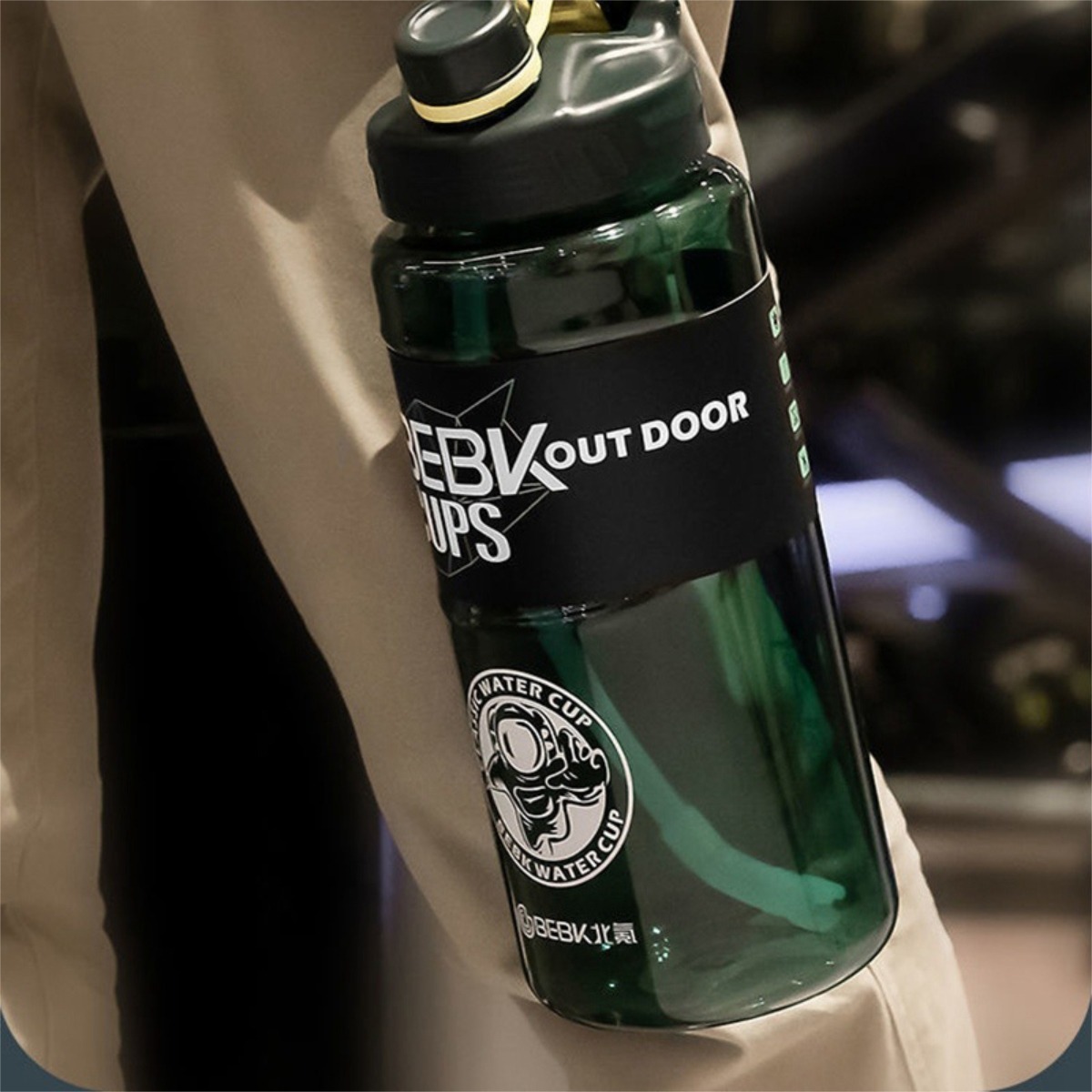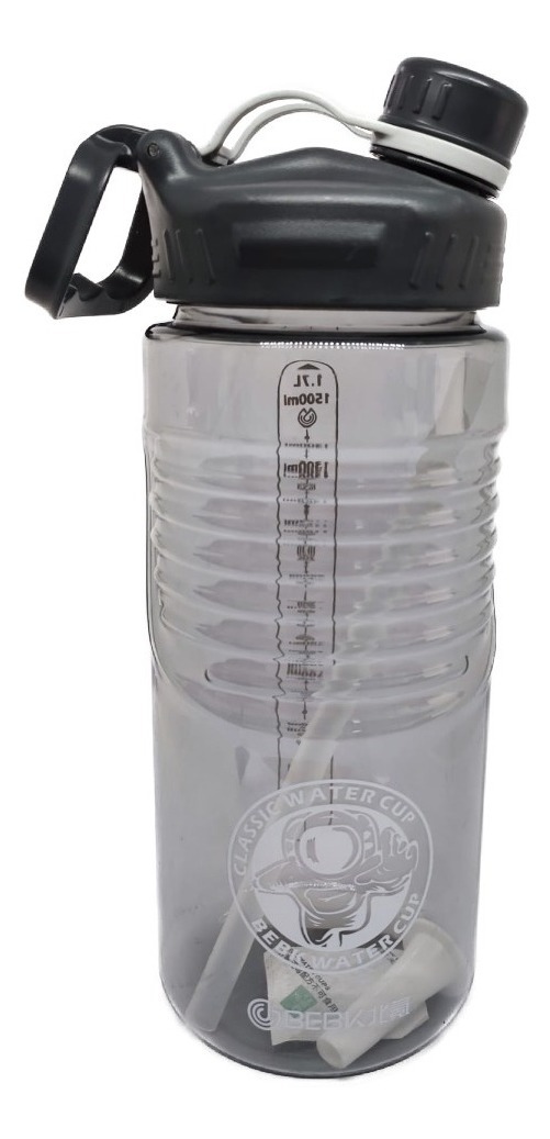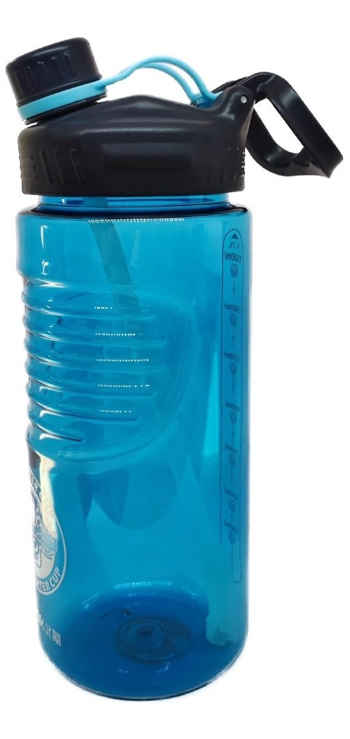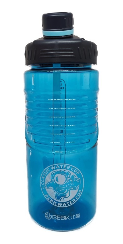 Botella plástica reutilizable ideal para el gimnasio, para llevar durante el día y llegar al mínimo recomendado de agua. Incluye pajita reutilizable, puede utilizarse con o sin ella.