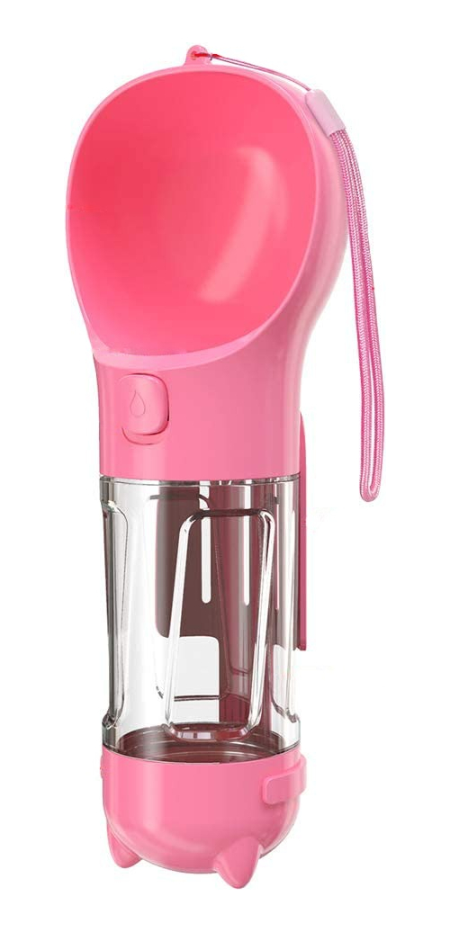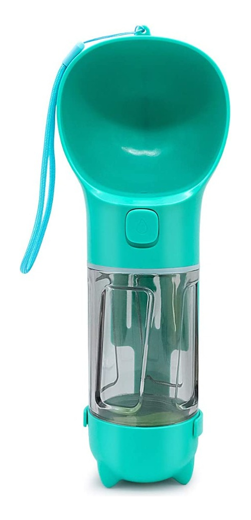 – Botella de agua para perros multifuncional, además de la función de agua potable, su propio diseño tiene un dispensador de bolsas de basura, pala de estiércol para perros; lo cual es conveniente y práctico. Adecuado para largas distancias a pie, senderismo y viajes. Sus adorables mascotas pueden disfrutar de agua fresca en cualquier momento y en cualquier lugar con esta botella. Un producto imprescindible para la salud de sus mascotas. – Duradero y seguro: el biberón portátil para perros está hecho de material de alta calidad y seguro para los alimentos que su mascota es absolutamente segura cuando utiliza nuestro biberón dispensador de agua para perros. – A prueba de perdidas: anillo de gel de sílice con diseño de llave de bloqueo para asegurarse de que la botella no pierda agua. – Operación con una mano: presione la tecla de agua con una sola mano para llenar el agua, suéltela para detener el agua. El agua que no se puede beber puede volver a la taza. Es fácil de desmontar y limpiar.