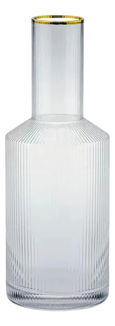 Esta botella de vidrio nórdico de 800 ml es la elección perfecta para quienes buscan combinar funcionalidad con estilo. Su diseño a rayas, complementado con un elegante detalle dorado, añade un toque de sofisticación a cualquier mesa o cocina. Ideal para servir agua, jugos o cualquier bebida, esta botella no solo es práctica, sino que también es un elemento decorativo que realza cualquier ocasión.
