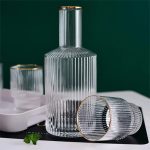 Botella De Vidrio Nórdico A Rayas Con Detalle Dorado  |