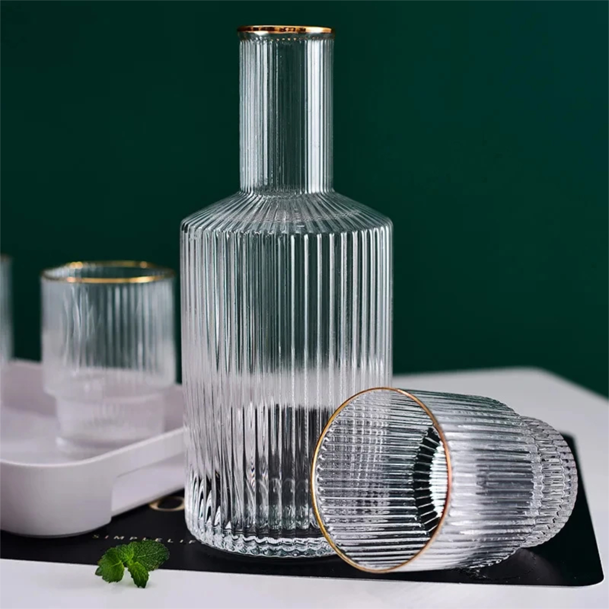 Botella De Vidrio Nórdico A Rayas Con Detalle Dorado