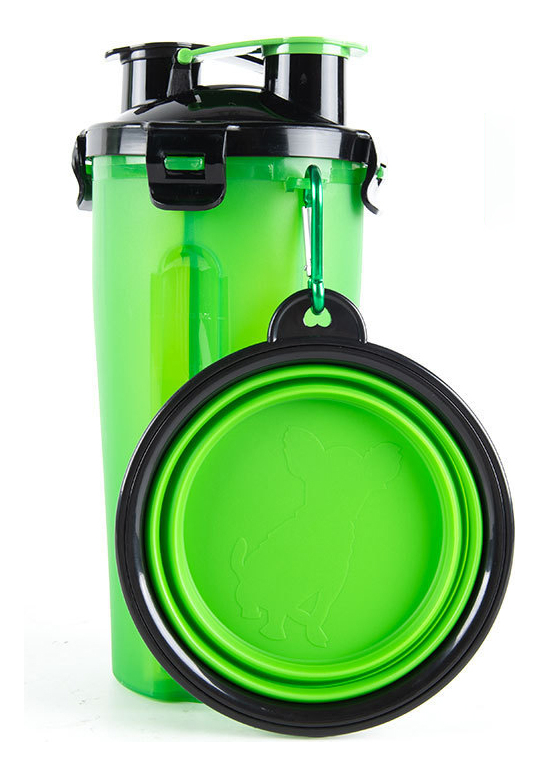 Botella Paseo 2 En 1 + Plato Bebedero Y Comedero Mascotas