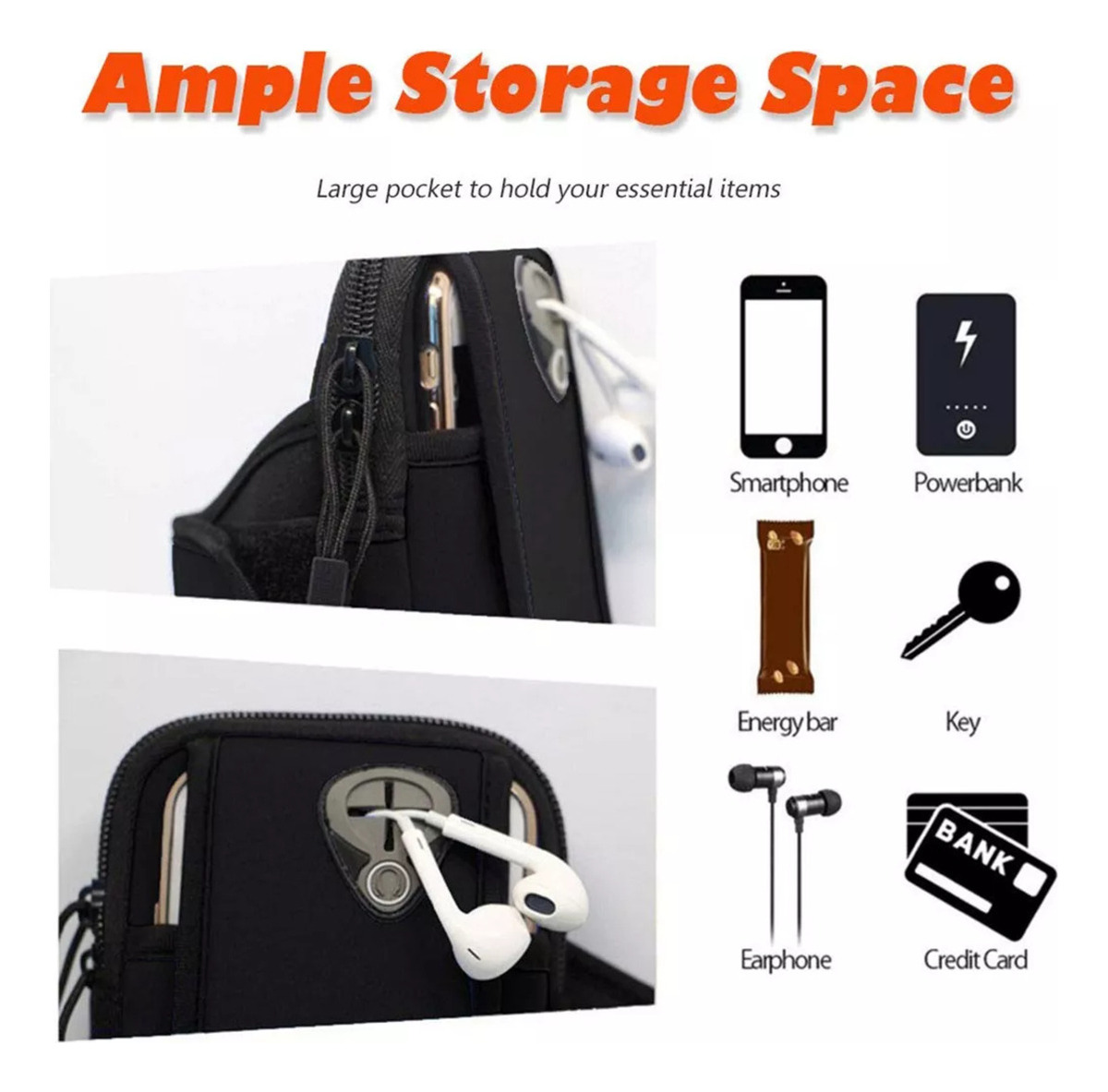 Security and Versatile Plus: diseño de tamaño extra, proporciona un espacio grande y seguro para su teléfono celular, así como las llaves de su casa o automóvil, tarjetas de identificación, crédito, efectivo, auriculares, iPod, Mp3, pasaporte, cable, pañuelos faciales y otros accesorios mientras realiza actividades al aire libre.