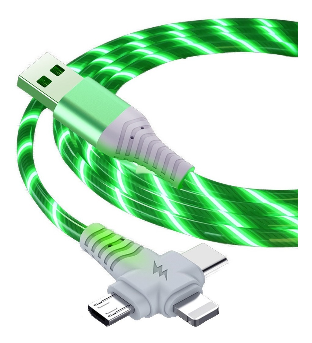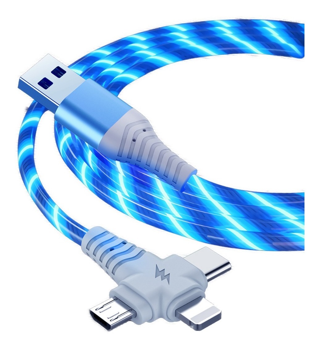 Cable Carga Usb Led Para Apple + Usb-c + Micro Usb