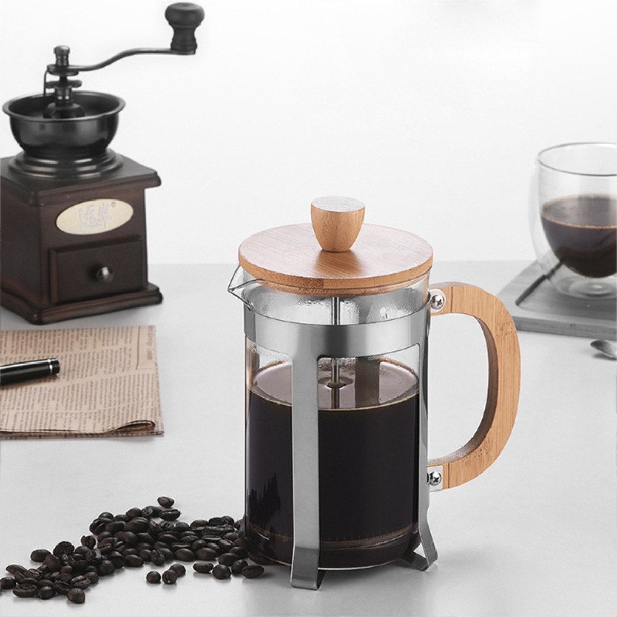Cafetera Manual Embolo Prensa Francesa Vidrio Y Madera 600ml