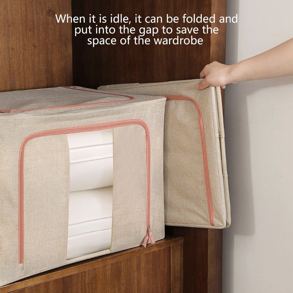 Optimiza tu espacio con esta caja organizadora de ropa, ideal para guardar prendas, mantas y accesorios. Fabricada en tela Oxford de alta calidad, es resistente y duradera. Su diseño plegable permite ahorrar espacio cuando no se usa, y su ventana transparente facilita la visualización del contenido. Además, cuenta con doble cierre para un acceso rápido y cómodo.