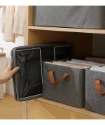 Mantén tu hogar siempre ordenado con esta caja organizadora de ropa fabricada en tela de excelente calidad. Ideal para guardar ropa, toallas o cualquier accesorio, su diseño con asas laterales facilita el transporte y manejo. Es plegable para ahorrar espacio cuando no se usa y está disponible en colores neutros que combinan con cualquier estilo de decoración.