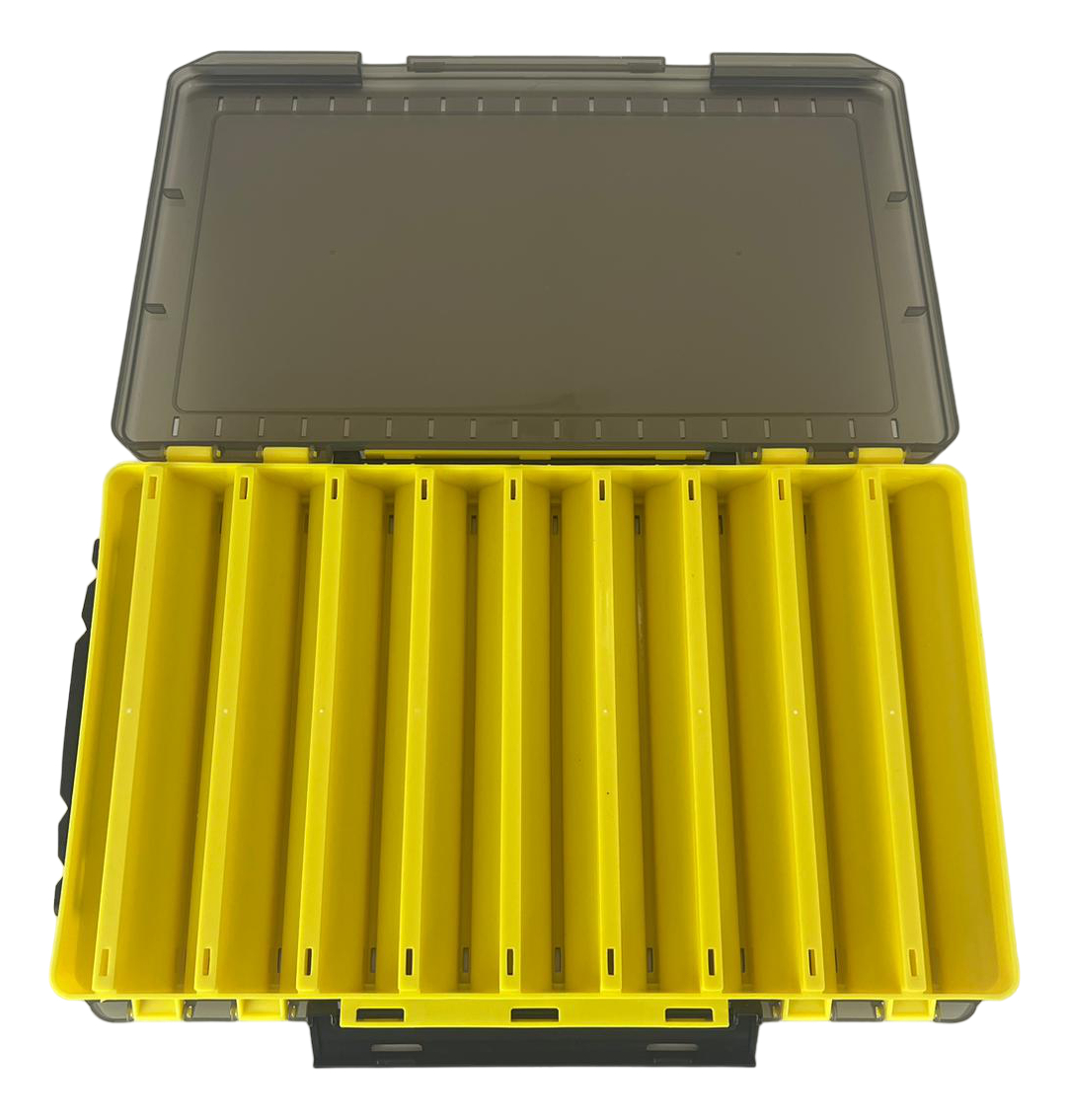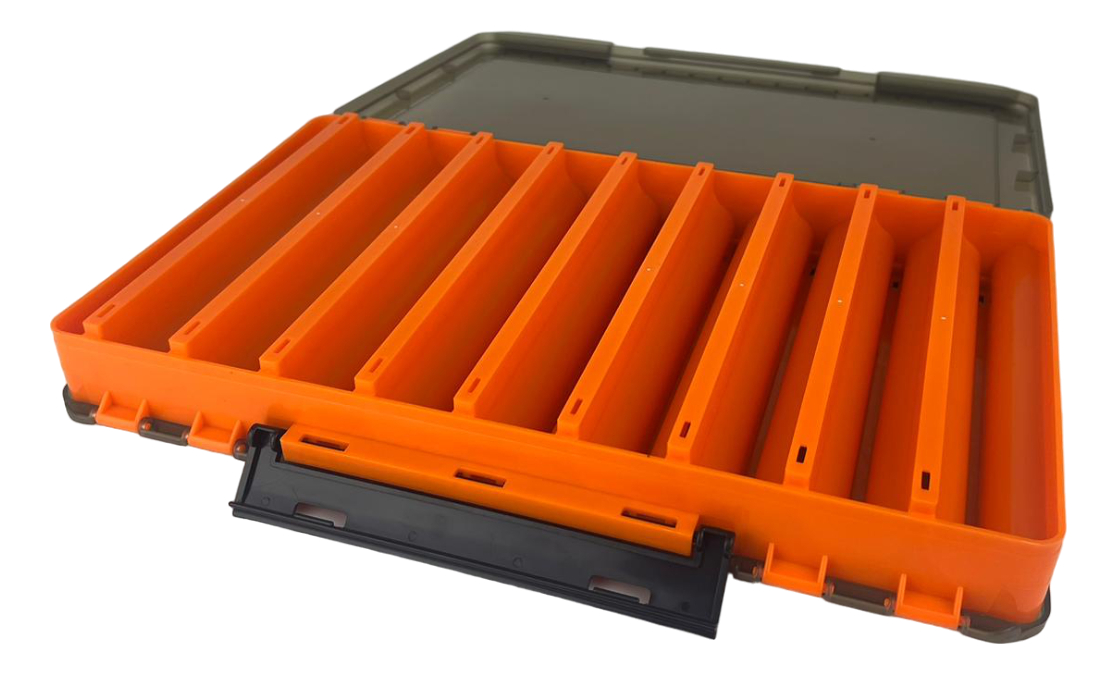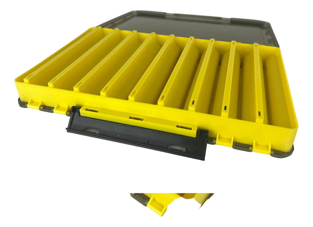 Doble cara ocho compartimientos de cada lado, ideal para almacenar señuelos.